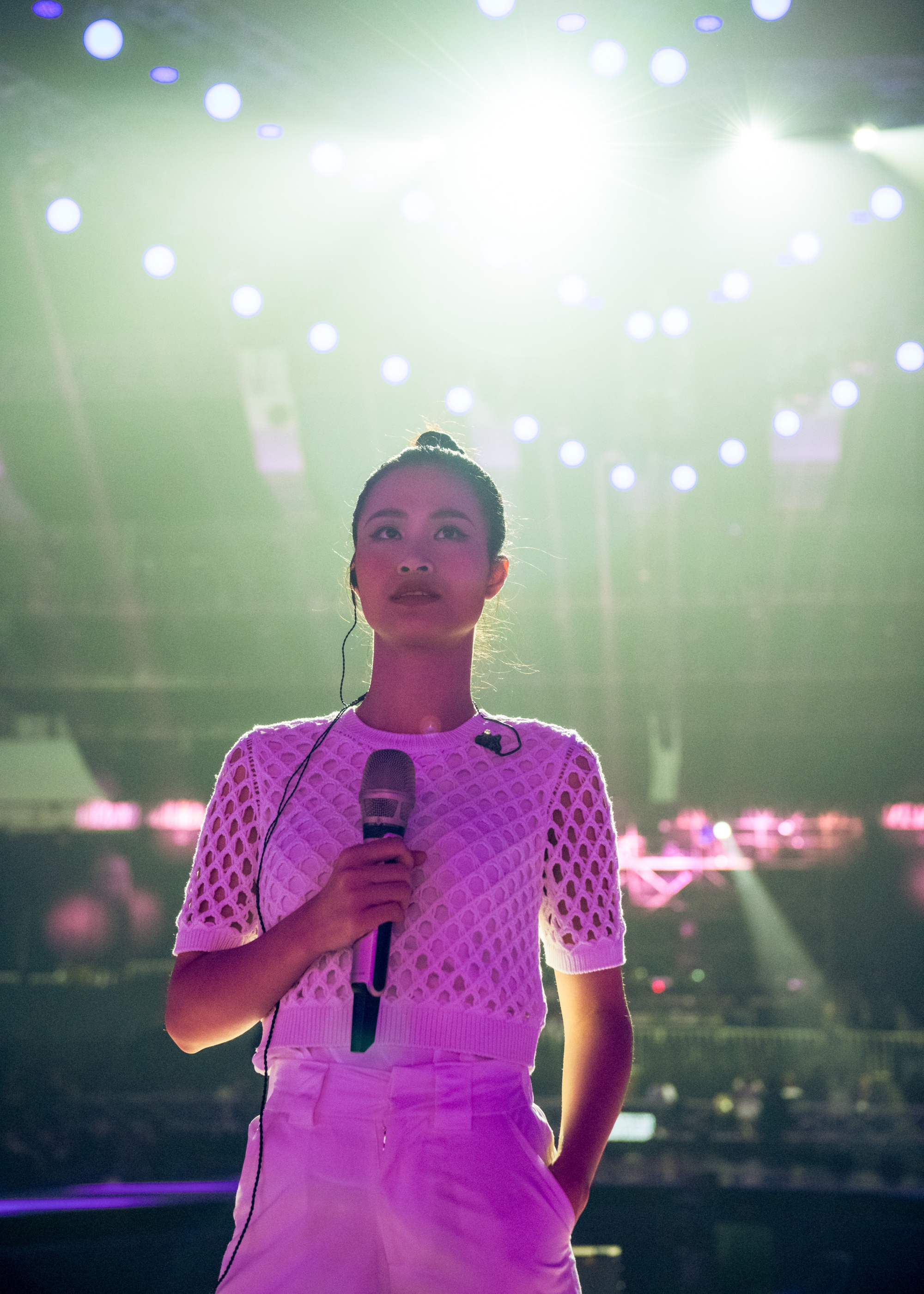 Đông Nhi tập trung cao độ trong buổi tổng duyệt quan trọng.