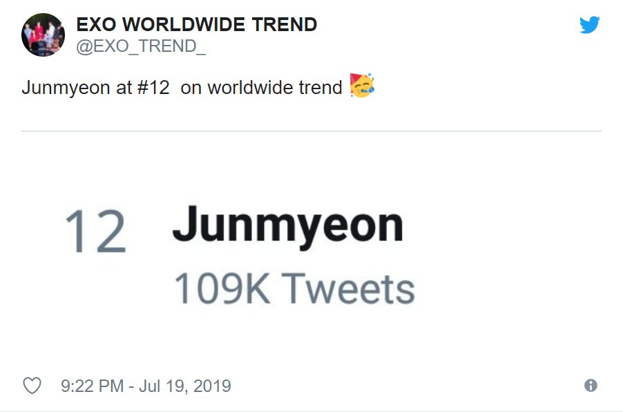 Junmyeon - tên thật của Suho đứng 12 trên bảng trending worldwide tại Twitter hôm qua.