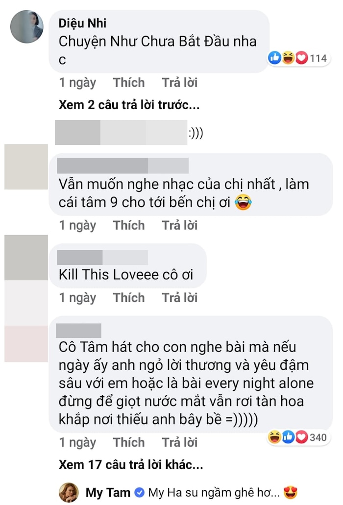 Giọng ca Ước gì giải thích rằng cô đã không đọc được bình luận này cho đến khi được nhân viên trong công ty đưa cho xem. Thế nên để đáp lại tình cảm nồng nhiệt từ người hâm mộ đặc biệt này, Mỹ Tâm đã quyết định hát chay một đoạn ngắn ca khúc trên. Thậm chí, nàng Họa mi còn lo lắng “cô bé Diệu Nhi” tổn thương vì không được thần tượng trả lời bình luận. Sướng nhất fangirl Diệu Nhi rồi nhé! vừa được thần tượng hát cho nghe lại còn vừa được nhắc đến tên cực đáng yêu.