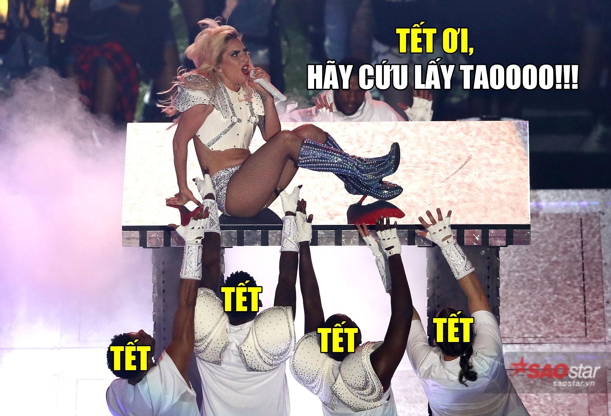 Gaga khi rơi từ trên không trung xuống trông rất hùng dũng, thế nhưng lật ngược tấm ảnh lại một tí thì chúng ta có ngay điệu nhảy chụp ếch huyền thoại: