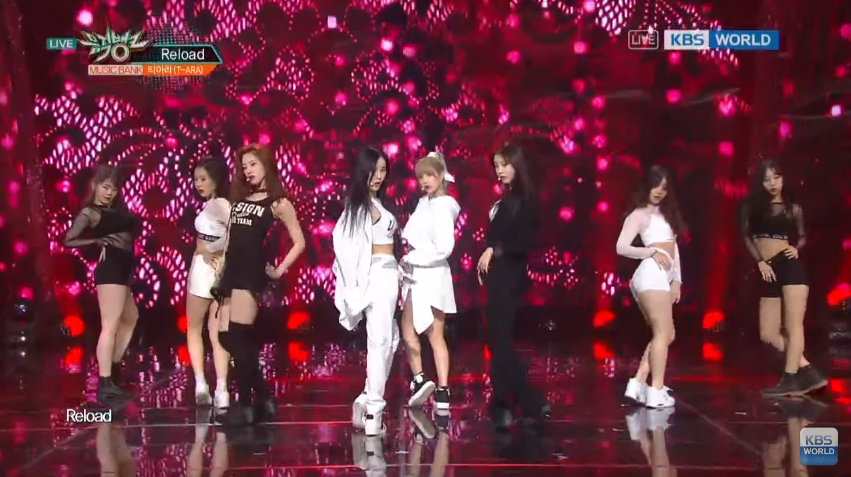 Ngày 16/6, T-ara đã mang 2 ca khúc Reload và What's My Name? đến với Music Bank. 2 sân khấu trở lại khiến người xem thích thú bởi sự hấp dẫn từ âm nhạc đến vũ đạo. Với ca khúc đầu tiên, T-ara diện trang phục cá tính tone màu đen trắng cùng những bước nhảy dứt khoát. Đến với sân khấu bài hát chủ đề What's My Name, girlgroup nhà MBK tiếp tục quyến rũ khán giả với hình tượng sexy không thể rời mắt.