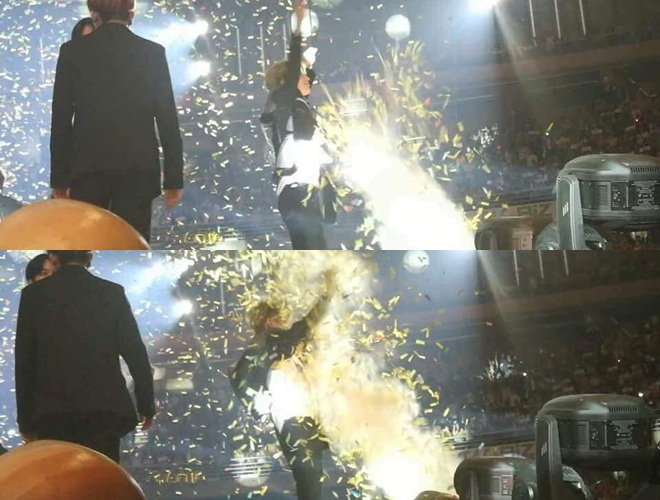 Đoạn clip ghi lại cảnh Taemin bị pháo giấy bắn trực diện.