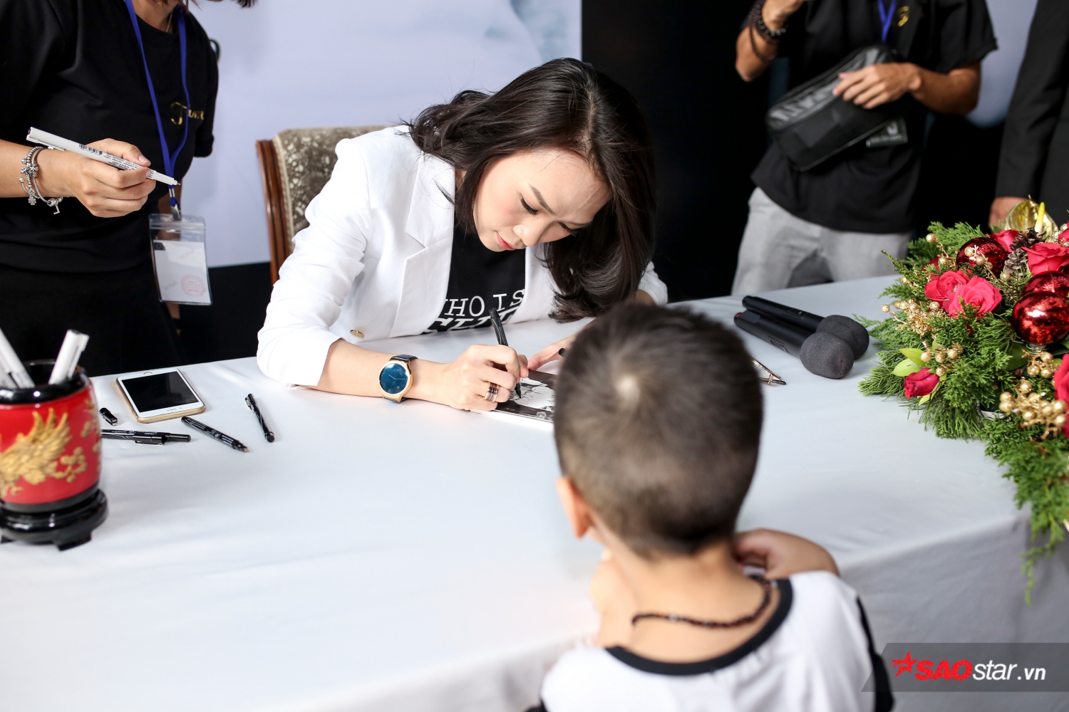 Khoảnh khắc đáng yêu Mỹ Tâm ký tặng fan nhí.