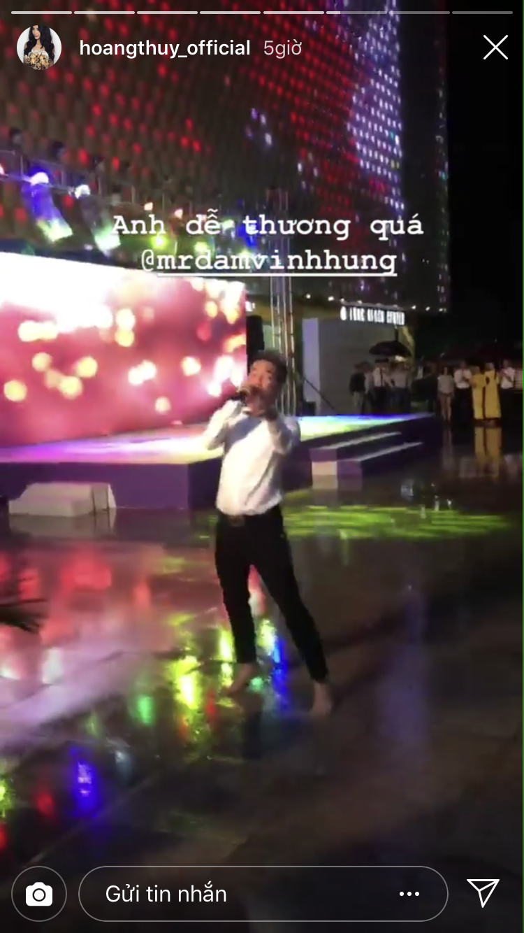 Vừa qua, trên trang Instagram của mình, Á hậu Hoàng Thùy bất ngờ đăng tải hai đoạn clip ngắn ghi lại phần trình diễn đậm chất “cây nhà lá vườn” của Đàm Vĩnh Hưng. Theo đó, “ông hoàng nhạc Việt” đang biểu diễn cực “sung” dù ở khá xa nhiều người đang nép mình trong hàng dù để tránh mưa, nam ca sĩ còn “chịu chơi” đi hẳn chân đất để thỏa bề nhảy nhót.