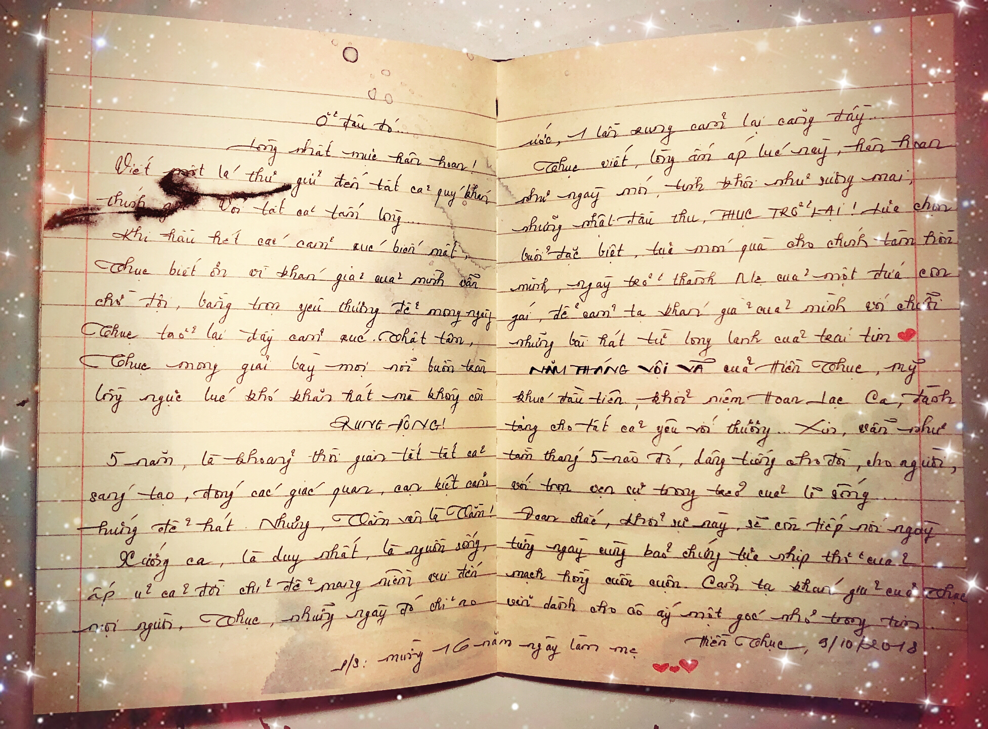Bên cạnh đó, Hiền Thục còn viết một bức tâm thư khá dài trong những ngày tháng lưu diễn tại Mỹ: “Khi tất cả các cảm xúc không còn, Thục biết ơn vì khán giả của mình vẫn chờ đợi, bằng tất cả thương yêu để mong ngày Thục trở lại đầy cảm xúc. Thật tâm, Thục mong giải bày tất cả với nỗi buồn tràn lồng ngực khi khó khăn hát mà không còn rung động. 5 năm, là khoảng thời gian tắt tất cả sáng tạo, đóng các giác quan, cạn kiệt cảm hứng để hát.