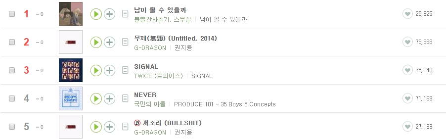 Galaxy, Tell Me You Love Me và You and Me From the Start đều là những ca khúc phóng thẳng lên #1 ngay sau khi phát hành của Bolbbalgan4, chẳng ngần ngại bất kỳ tên tuổi lớn nào.
