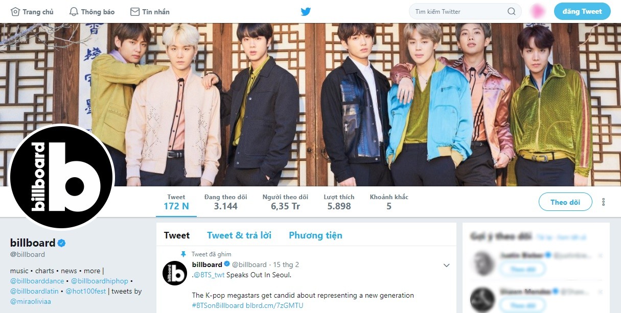 Trên trang Twitter chính thức của Billboard, BTS cũng “chiếm sóng” rất nhiều.