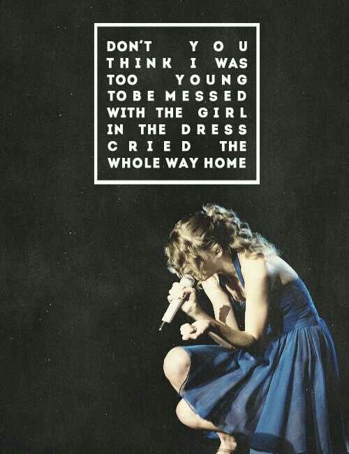 Chiếc đầm dạ tiệc: “And it was like slow motion/ Standing there in my party dress” (Và giây phút ấy giống như những chuyển động chậm, đứng nơi ấy trong chiếc đầm dạ tiệc của em).