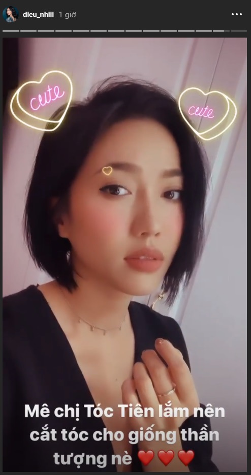 Ấy thế mà ít ai biết, Diệu Nhi lại có riêng một thần tượng khiến cô nàng sẵn sàng… “xuống tóc” để được giống thần tượng nhất. Và không ai khác đó chính là… nữ ca sĩ Tóc Tiên. Trên story Instagram, Diệu Nhi đã chia sẻ hình ảnh mới “xuống tóc” cùng dòng trạng thái “Mê chị Tóc Tiên lắm nên cắt tóc cho giống thần tượng”.