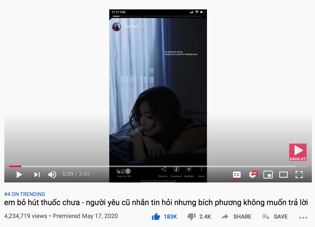Trên mặt trận YouTube, MV “em bỏ hút thuốc chưa?” đã đạt hơn 4.2 triệu lượt xem sau 2 ngày, đạt top 4 trending Việt Nam. Bên cạnh đó, hai bản instrumental của “em bỏ hút thuốc chưa” cũng lần lượt xếp hạng #38 và #47 ở nền tảng này.
