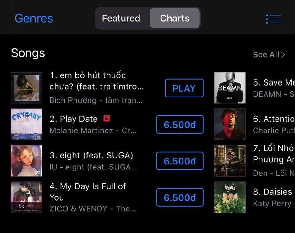 Ngoài ra, ca khúc cũng lần lượt đạt vị trí thứ nhất trên các nền tảng Apple Music, Spotify trong 2 ngày qua.