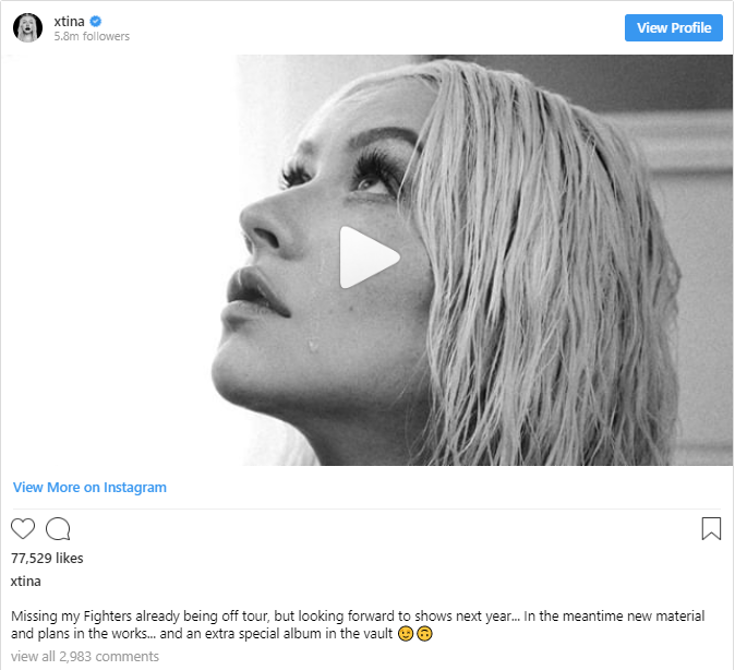 Christina Aguilera chia sẻ trên Instagram của mình về album mới