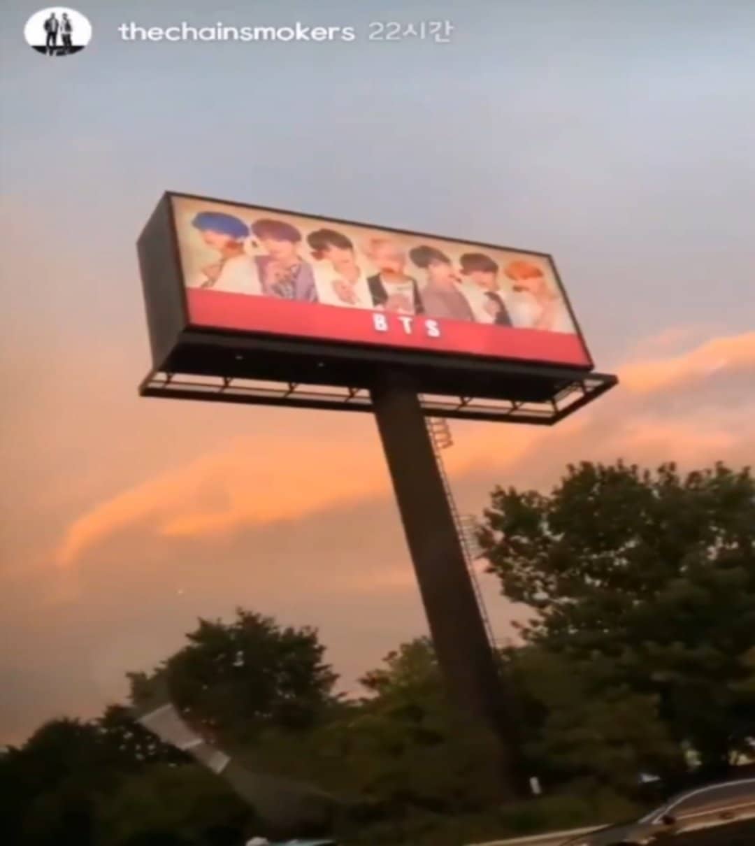 The Chainsmokers chia sẻ tấm biển quảng cáo của BTS trên story.
