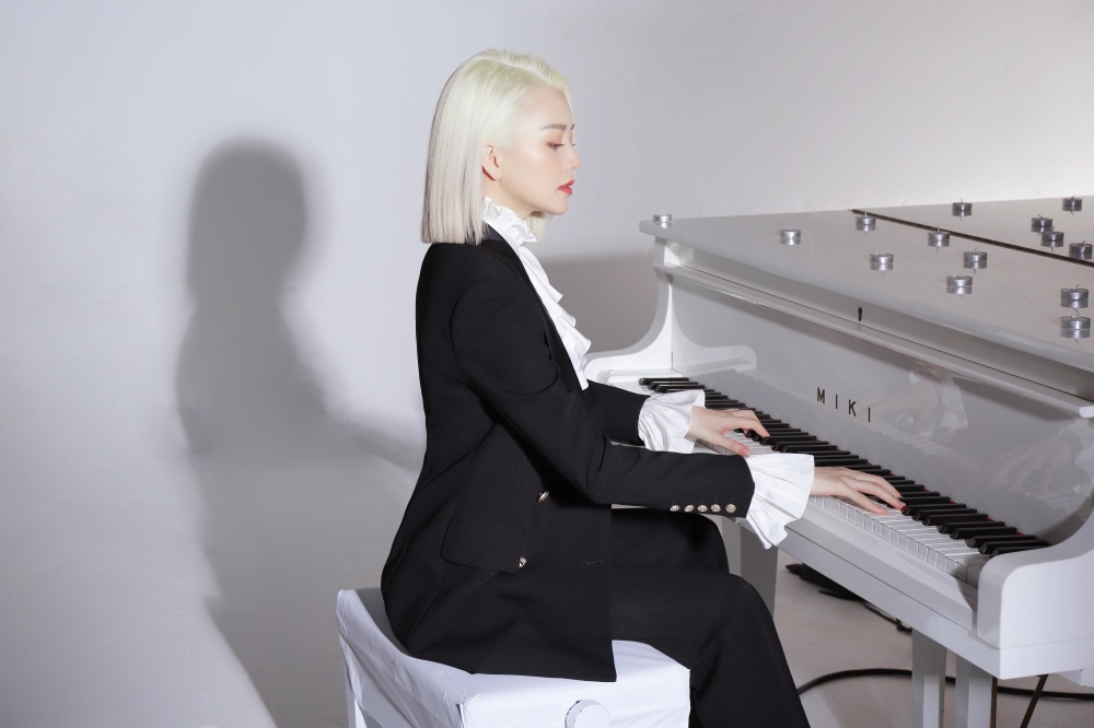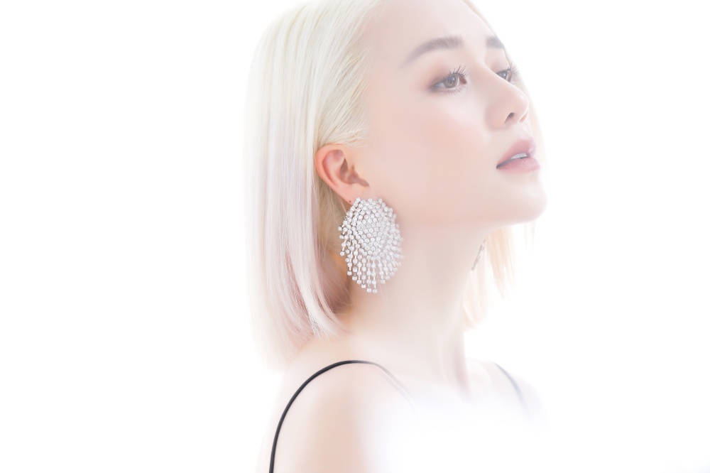 Nữ ca sĩ trông vô cùng cá tính với mái tóc bạch kim.