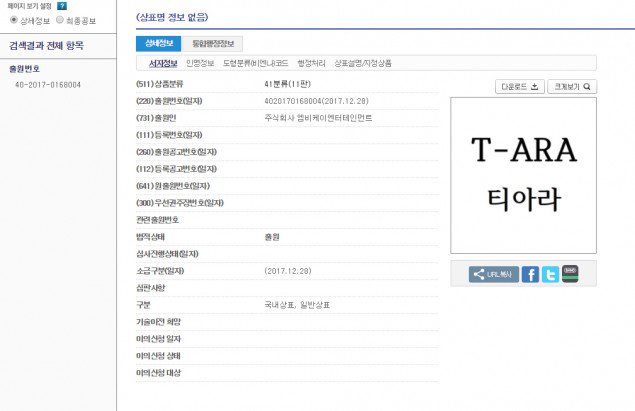 Thế nhưng mới đây, người hâm mộ lại phát hiện ra tình tiết đầy bất ngờ khác. Cụ thể, dựa vào thông tin trên website của cơ quan sở hữu trí tuệ Hàn Quốc, MBK đã đăng ký thương hiệu T-ara vào ngày 28/12/2017. Nếu được chấp nhận, cái tên T-ara sẽ thuộc quyền sở hữu độc quyền của MBK. Điều đó đồng nghĩa với việc các cô gái không được dùng tên T-ara cũng như biểu diễn các bài hát cũ trước đây sau khi rời MBK.
