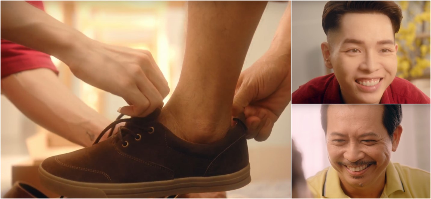 Đặc biệt là người bố của Đức Phúc với ánh mắt nhiều cảm xúc, khi Đức Phúc mang đôi giày Bita's vào đôi chân chai sạn cho mình. Đó là ánh mắt xúc động, yêu thương xen lẫn bất ngờ khi con trai đã thực sự trưởng thành, khiến không ít người xem vỡ oà theo.