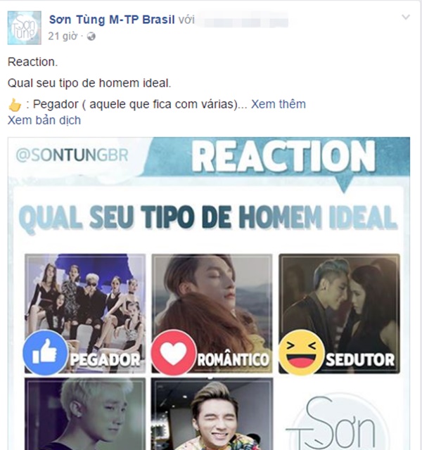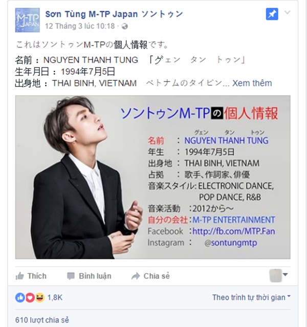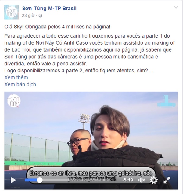 Sơn Tùng đã có fanpage tại 3 quốc gia: Brazil, Nhật Bản và Hàn Quốc.