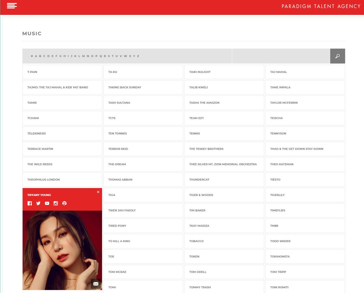 Được biết, cô nàng đã gia nhập Paradigm Talent Agency, cùng nhà với rất nhiều nghệ sĩ USUK nổi tiếng như: Black Eyed Peas, Coldplay, Ed Sheeran, Fun, Jason Mraz,… Trên website chính thức của công ty này đã tiết lộ, thành viên SNSD sẽ quảng bá dưới nghệ danh Tiffany Young.