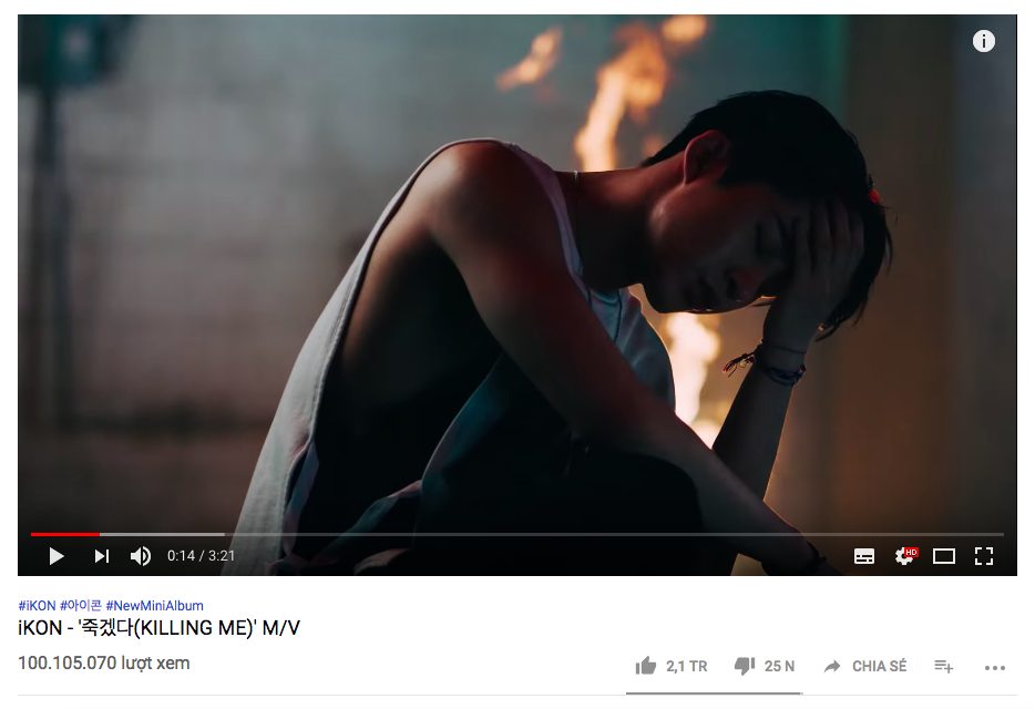 Mới đây, các iKONIC (tên fanclub của iKON) được đón tin vui đầu năm mới khi thần tượng của mình vừa đạt được dấu mốc ấn tượng trên Youtube. Cụ thể, vào chiều tối ngày 8/2, sau hơn 6 tháng phát hành, MV Killing Me của iKON đã chính thức đạt mốc 100 triệu lượt xem, đưa tổng số MV của nhóm đạt mốc view khủng này lên thành 2, trước đó là MV Love Scenario từng đạt 100 triệu views vào hồi tháng 6 năm 2018.