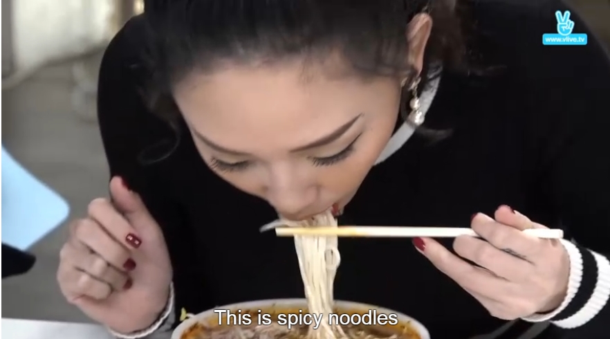 Tóc Tiên hào hứng ăn món phở cay do chương trình chuẩn bị.