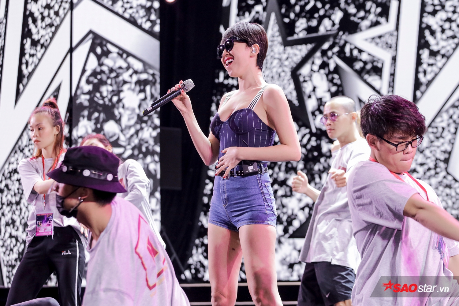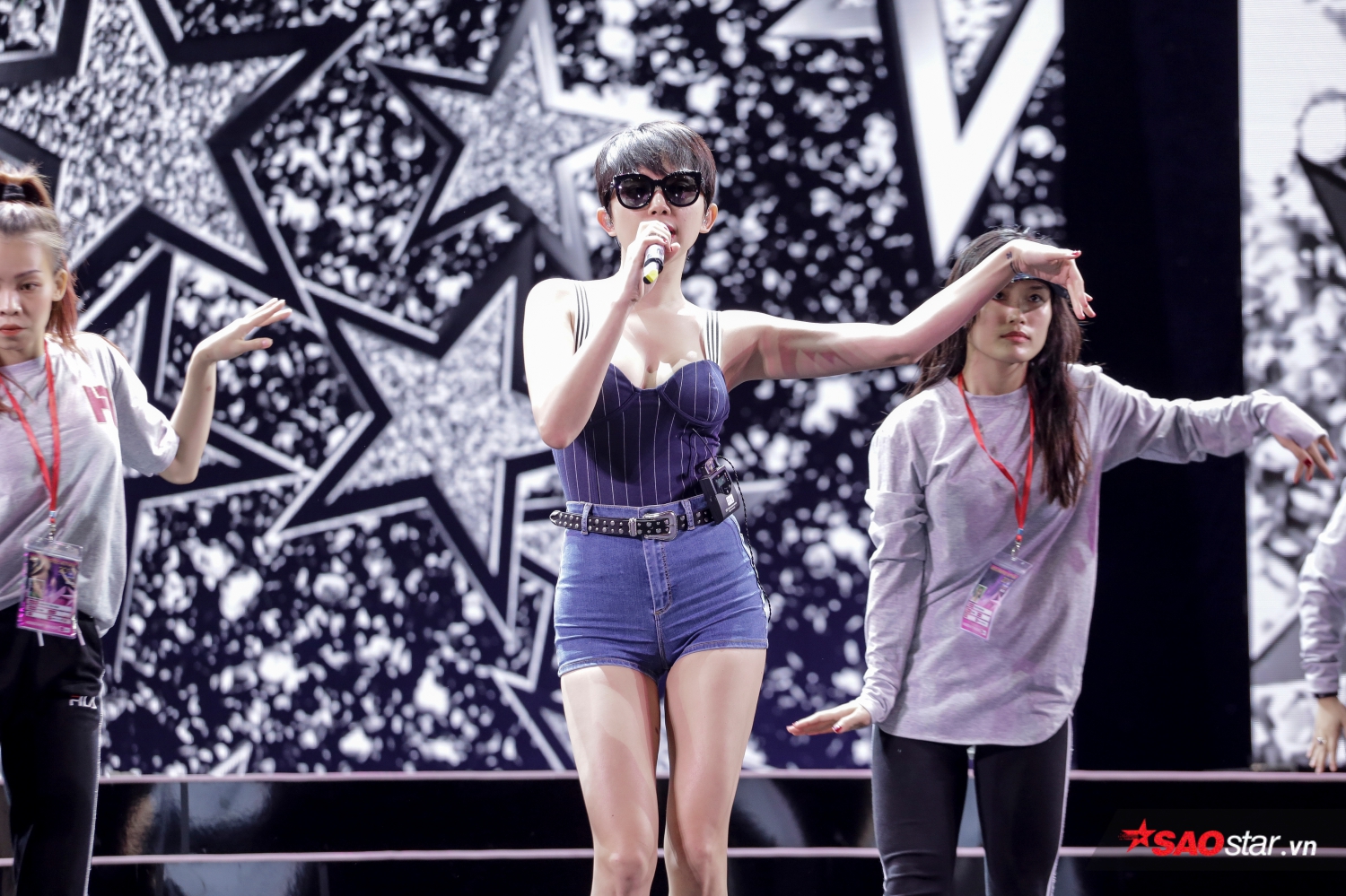 Tóc Tiên xinh đẹp trong buổi tổng duyệt bán kết HHHV 2017.