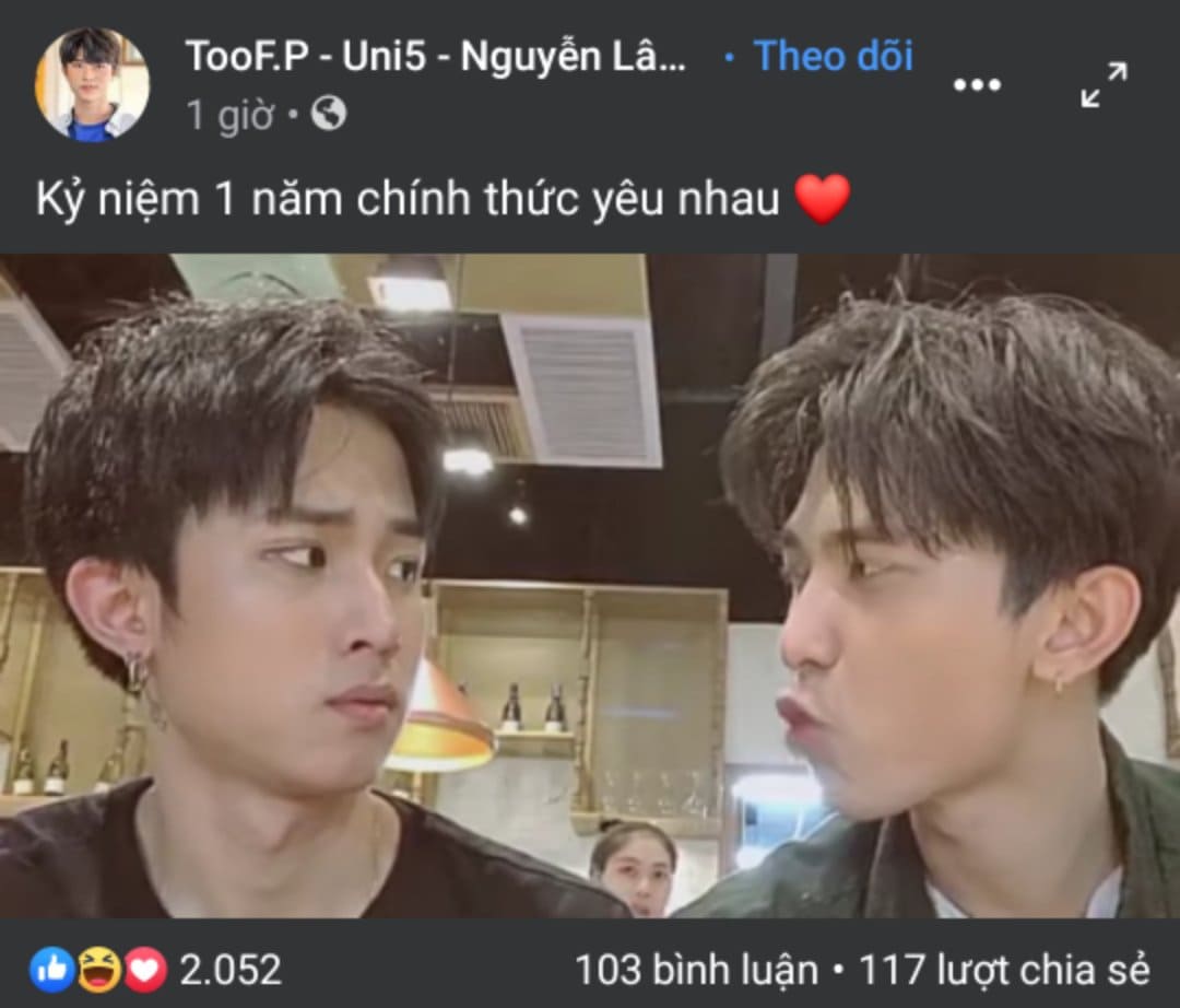 Mới đây, cộng đồng người hâm mộ Uni5 đang vô cùng hoang mang trước thông tin 2 thành viên Toof.P và K.O của Uni5 đã kỷ niệm 1 năm chính thức yêu nhau. Theo đó, Toof.P đã chia sẻ trên fanpage của mình một đoạn clip vô cùng ngọt ngào với K.O cùng dòng caption lãng mạn: “Kỷ niệm 1 năm chính thức yêu nhau“.