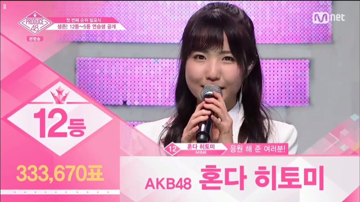 Hạng 12 - Honda Hitomi từ AKB48. Không phải là thí sinh nổi bật ngay từ đầu nhưng Hitomi đang được chú ý bởi tài năng và khuôn mặt không thể “cưng” hơn. Cô nàng ban đầu bị xếp lớp C và sau khi đánh giá lại đã được chuyển lên lớp A. Hitomi còn là người dạy vũ đạo cho team của mình khi thực hiện thử thách cover ca khúc Very Very Very.
