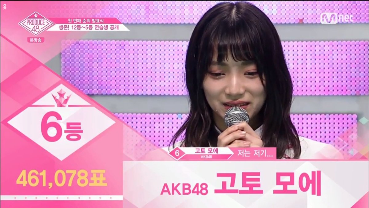 Hạng 6 - Goto Moe đến từ AKB48. Ở Moe, người ta luôn cảm nhận được một tinh thần làm việc hết sức nghiêm túc và máu lửa, luôn luôn cố gắng để hoàn thành nhiệm vụ. Có lẽ vì thế mà dù vẫn còn nhiều thiếu xót nhưng cô nàng vẫn được fan yêu mến.