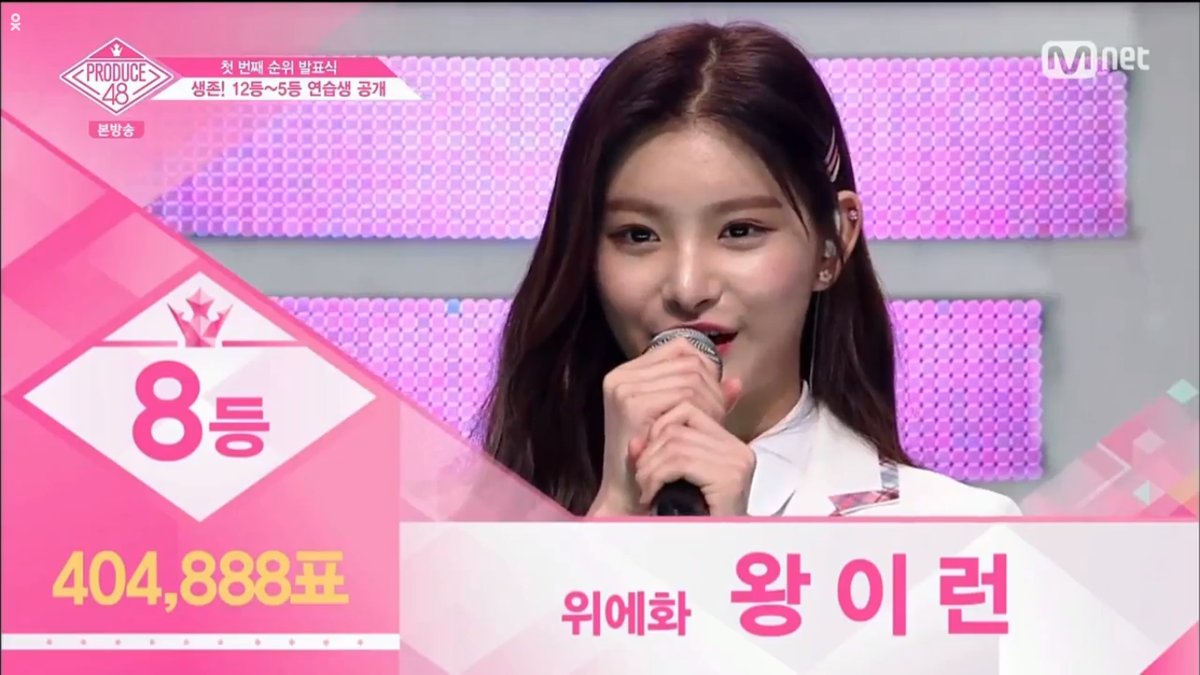 Hạng 8 - Wang Yireon đến từ Yuehua Entertainment. Cô gái Trung Hoa duy nhất trong Produce 48 có được thứ hạng này là nhờ sở hữu nhan sắc quá lộng lẫy, Yireon được bình chọn là thí sinh có visual đỉnh nhất chương trình.