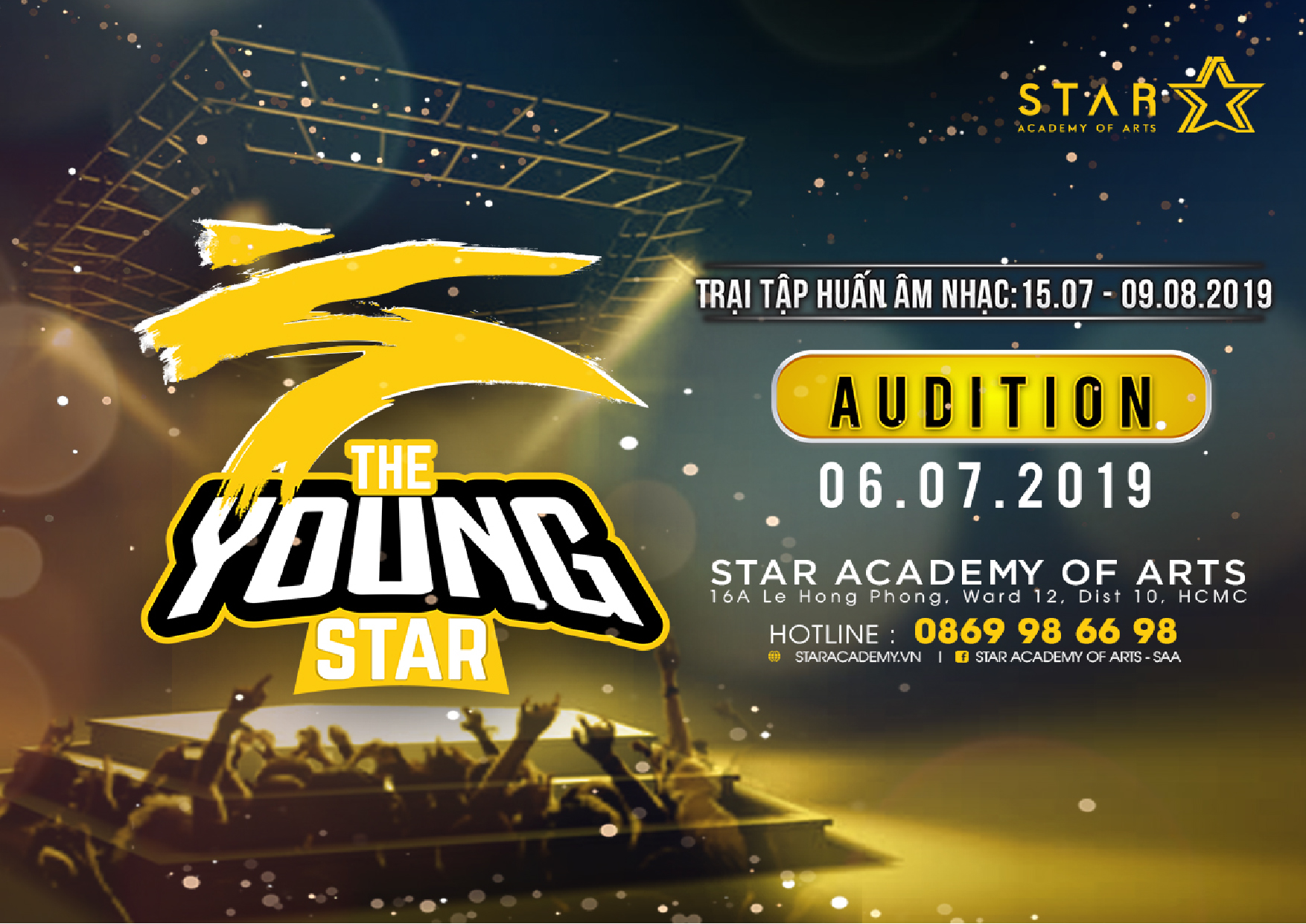 Để có mặt tại The Young Star, các tài năng trẻ cần vượt qua vòng Audition trực tiếp vào ngày 6/7/2019 (nhận đơn đăng ký từ nay đến hết ngày 4/7).