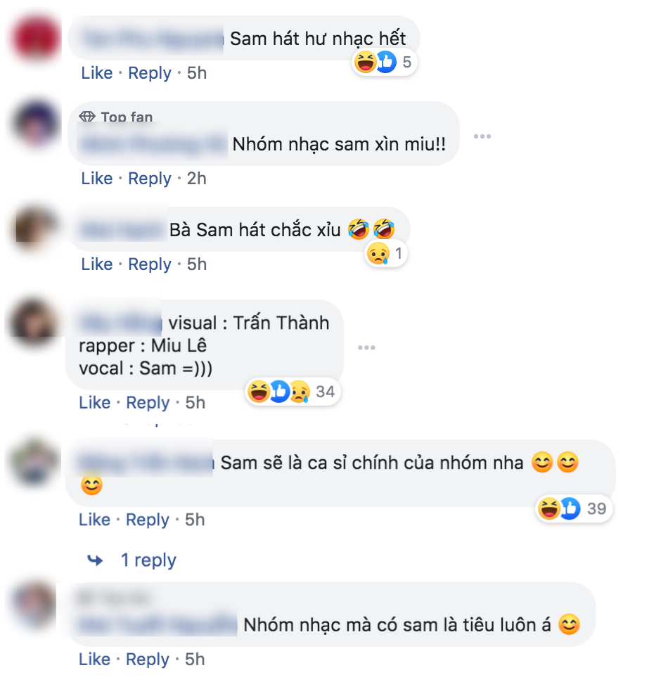 Bên dưới comment, mọi sự chú ý đổ dồn vào nữ diễn viên Nếu còn có ngày mai, dường như nhà nhà người người đều “thấu hiểu” giọng hát của Sam và “hết lòng” bình chọn Sam vào vị trí vocal (giọng ca chính). Nếu thành sự thật thì khó mà đoán được tương lai của nhóm nhạc “đầy tiềm năng” này sẽ đi về đâu.