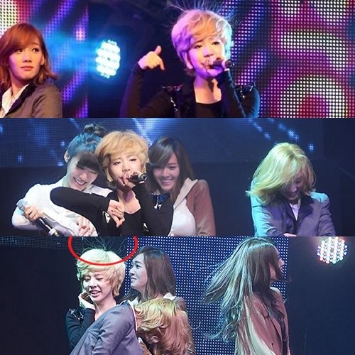 Câu chuyện “tóc hát” của “gánh hài quốc dân” SNSD luôn khiến khán giả phải phì cười mỗi khi nhắc lại. Chuyện là vì khi biểu diễn, mái tóc của Sunny bị dựng ngược trên sân khấu và khiến cô trở thành tâm điểm châm chọc của hội chị em, trong đó có Taeyeon. Thế nhưng, chỉ vài phút sau đó, mái tóc của Taeyeon cũng bỗng dưng “nổi loạn”. Quả đúng là “cười người hôm trước hôm sau người cười” mà.