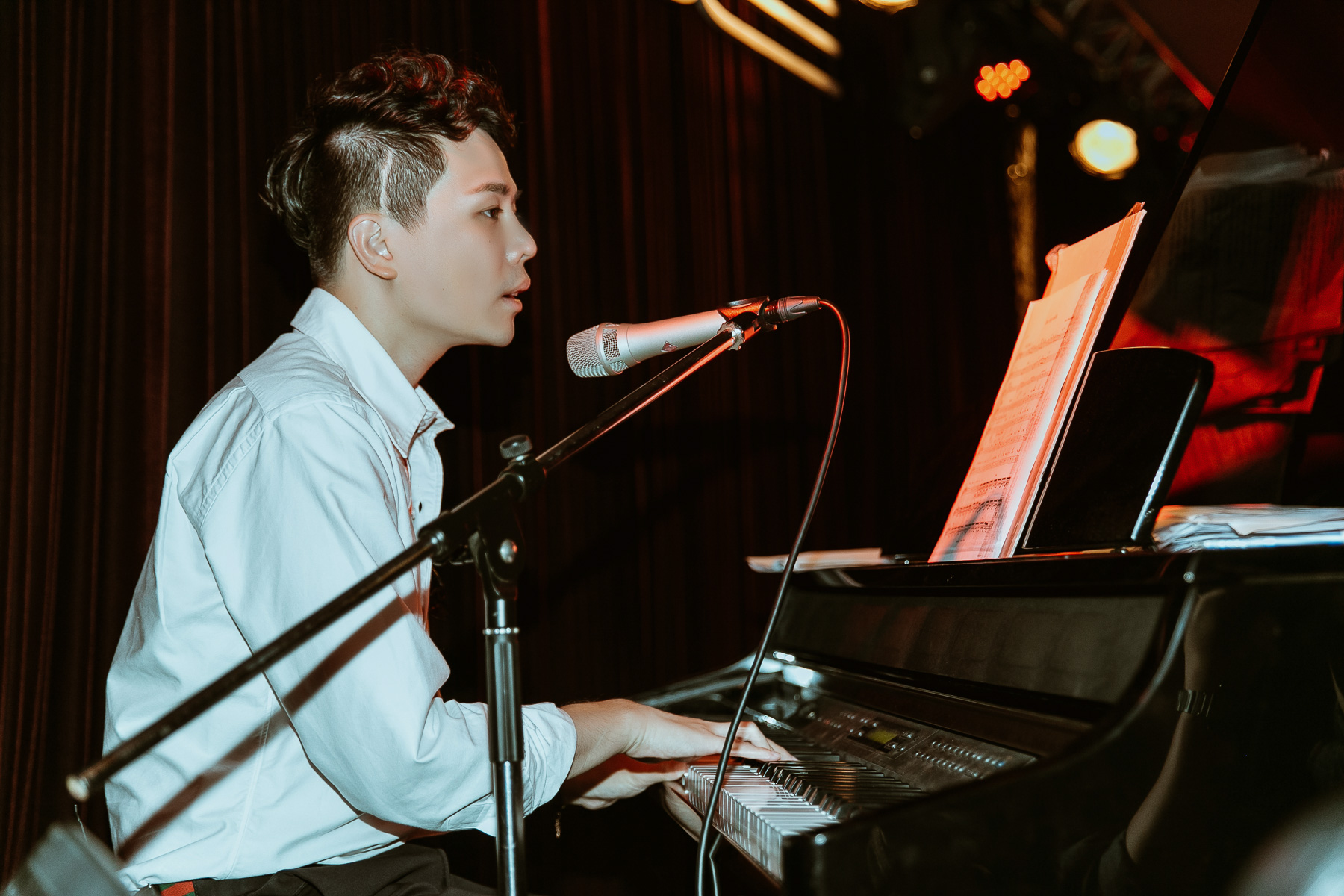 Anh tự đệm đàn một số bài hát để gửi tặng khán giả.