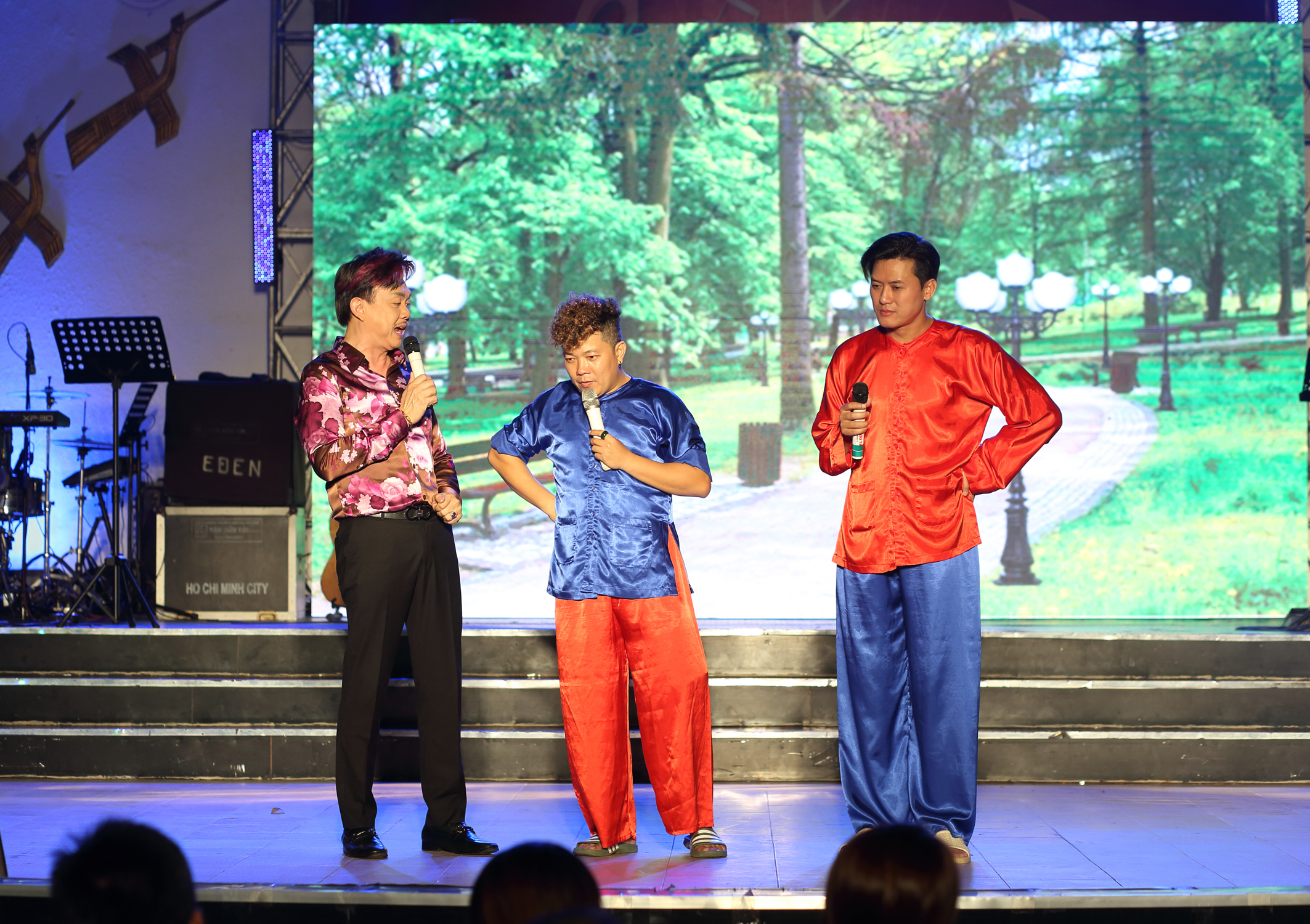 Danh hài Chí Tài cùng bộ đôi Hoàng Mèo, Quách Ngọc Tuyên mang đến tiểu phẩm hài “Hình công viên”.