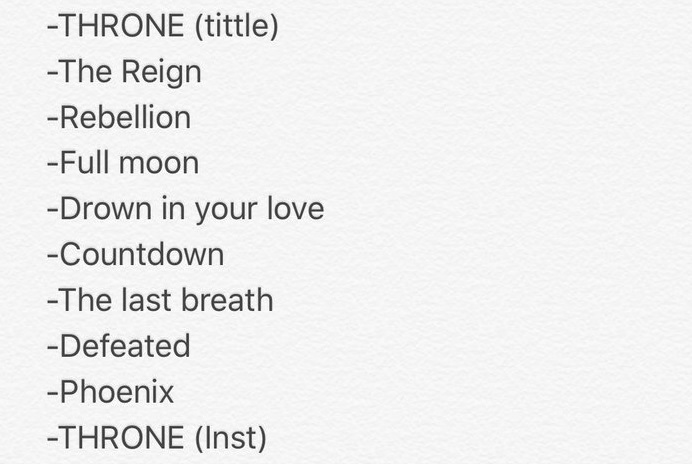 Chưa dừng lại ở đó, toàn bộ danh sách các bài hát trong album mới cũng được tiết lộ và bài hát chủ đề có tên Throne (?!).