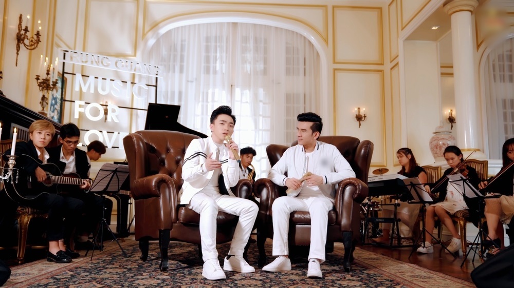 Trong tập 6 Trung Quang - Music For Love, hai thầy trò có dịp song ca cùng nhau. Cả hai xuất hiện như những chàng bạch mã hoàng tử với sắc trắng sang trọng.