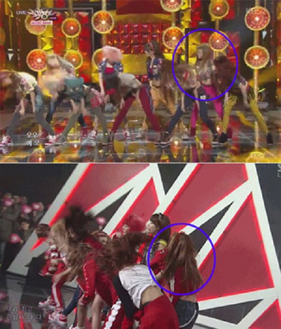 Chae Young(người đứng thứ 3 từ trái sang) bị tố uể oải, thiếu chuyên nghiệp hơn những thành viên khác vì không bật nhảy cao khi trình diễn.