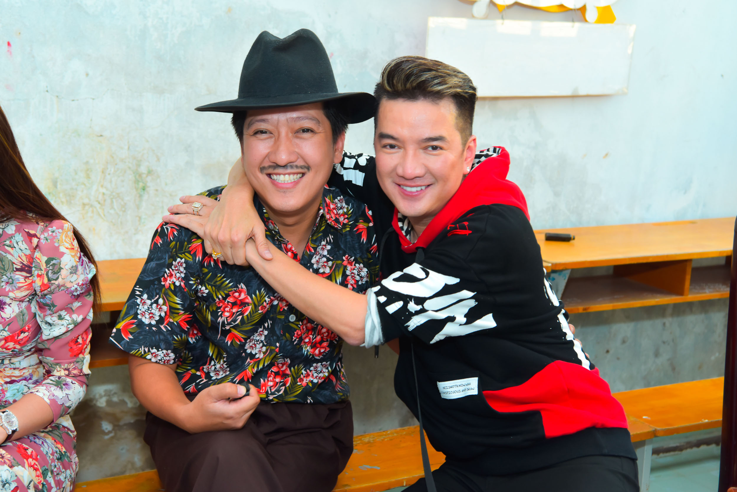 Ngoài việc biểu diễn không nhận thù lao, ca sĩ Đàm Vĩnh Hưng còn kêu gọi các đồng nghiệp tham gia cùng mình trong hoạt động rất ý nghĩa này. Đặc biệt, khoảnh khắc trong hậu trường khiến khán giả thích thú đó là Mr. Đàm dành cho Trường Giang một nụ hôn vô cùng thắm thiết khiến anh “méo xẹo” cả mặt.