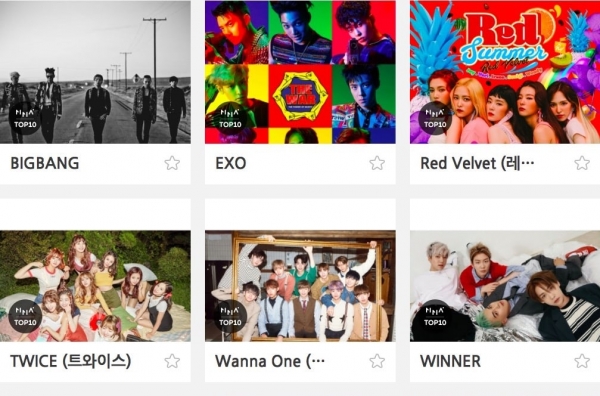 Trong đó bao gồm nhiều cái tên nổi tiếng và quen thuộc như BigBang, EXO, BTS, IU,…