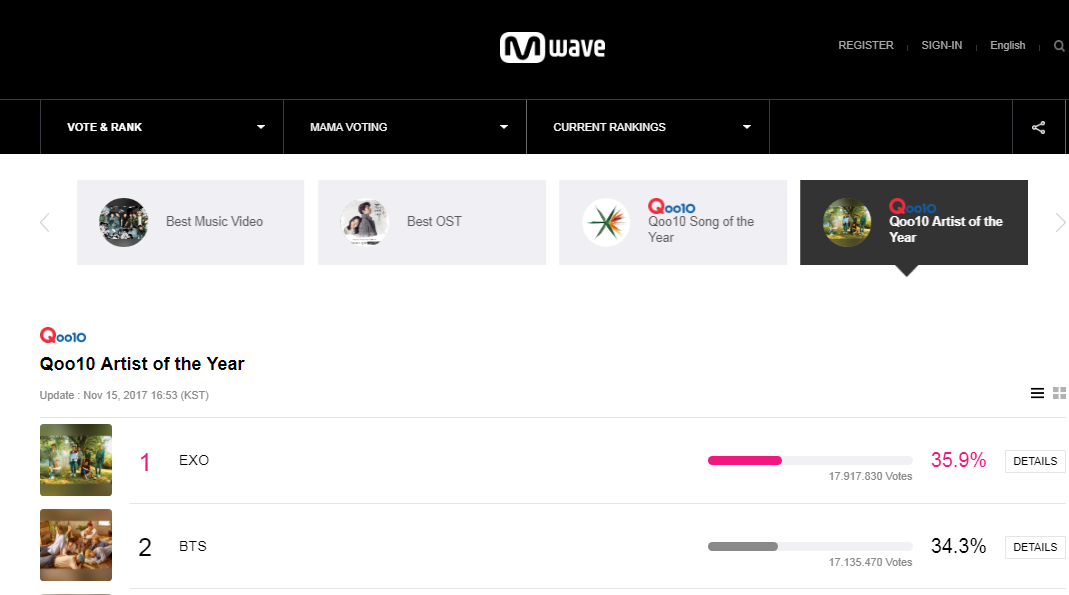 MAMA 2017 chính thức mở cổng bình chọn ngày 19/10.