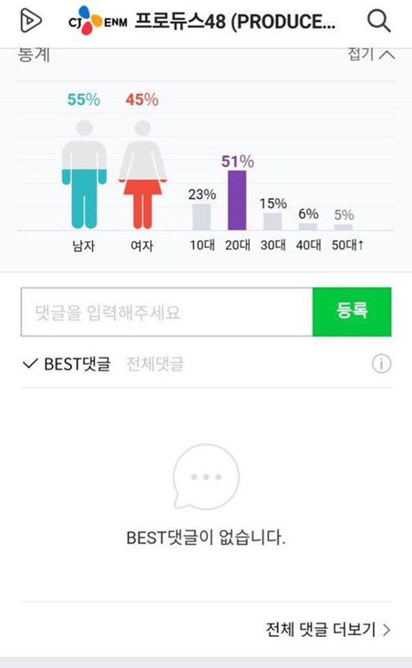 Còn đây là khi antifan bắt đầu tấn công, nữ chỉ còn 45%, nam lên đến 55%, bình luận tiêu cực nhiều đến nỗi có lúc Naver bị quá tải như trong hình.