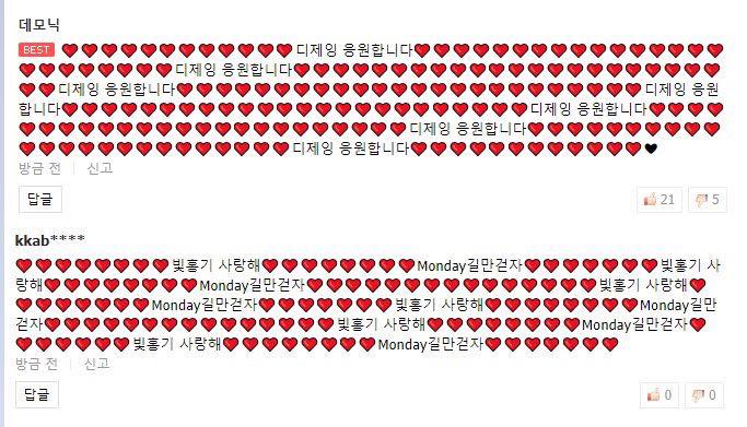 Những bình luận đầy biểu tượng trái tim thế này thực chất là lời chế giễu, mỉa mai Kaeun, antifans dùng nó để đánh lừa những người không biết tiếng Hàn.