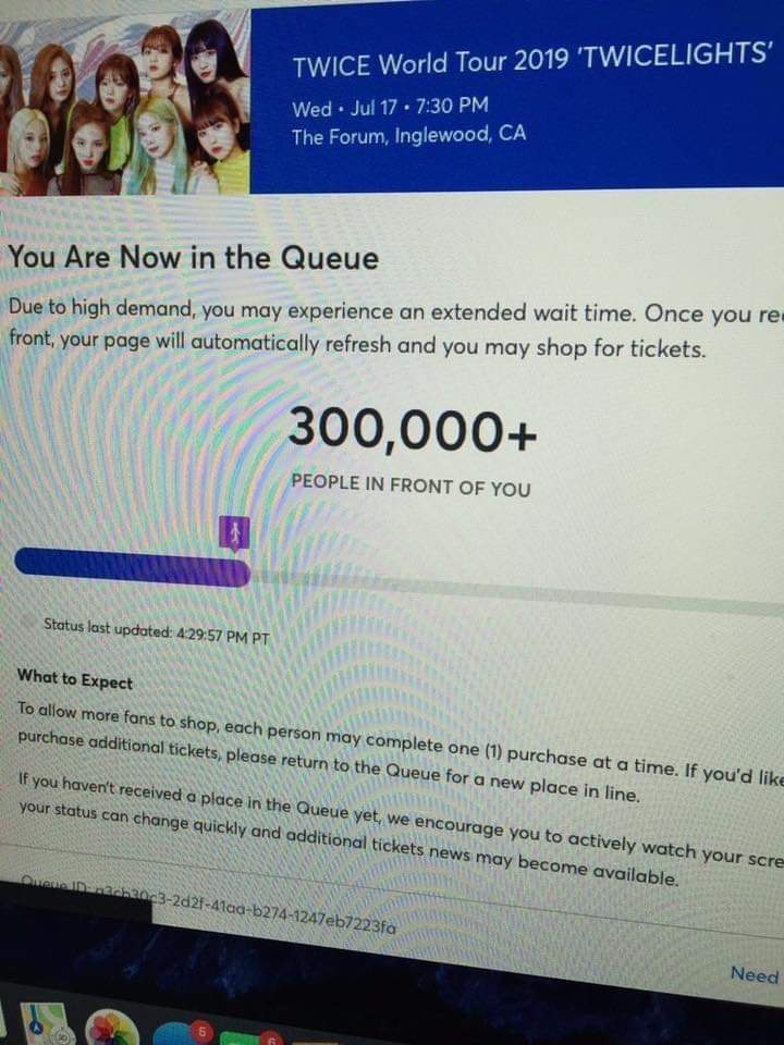 Mới đây, cộng đồng fan Kpop hay tin Twice đã bán hết toàn bộ vé đêm diễn đầu tiên của concert World Tour tại Los Angeles. Mặc dù lượng vé bán ra không được công bố nhưng theo thông tin lan truyền trước giờ mở cổng giao dịch, đã có đến hơn 300 nghìn người chờ mua vé concert của nhóm.
