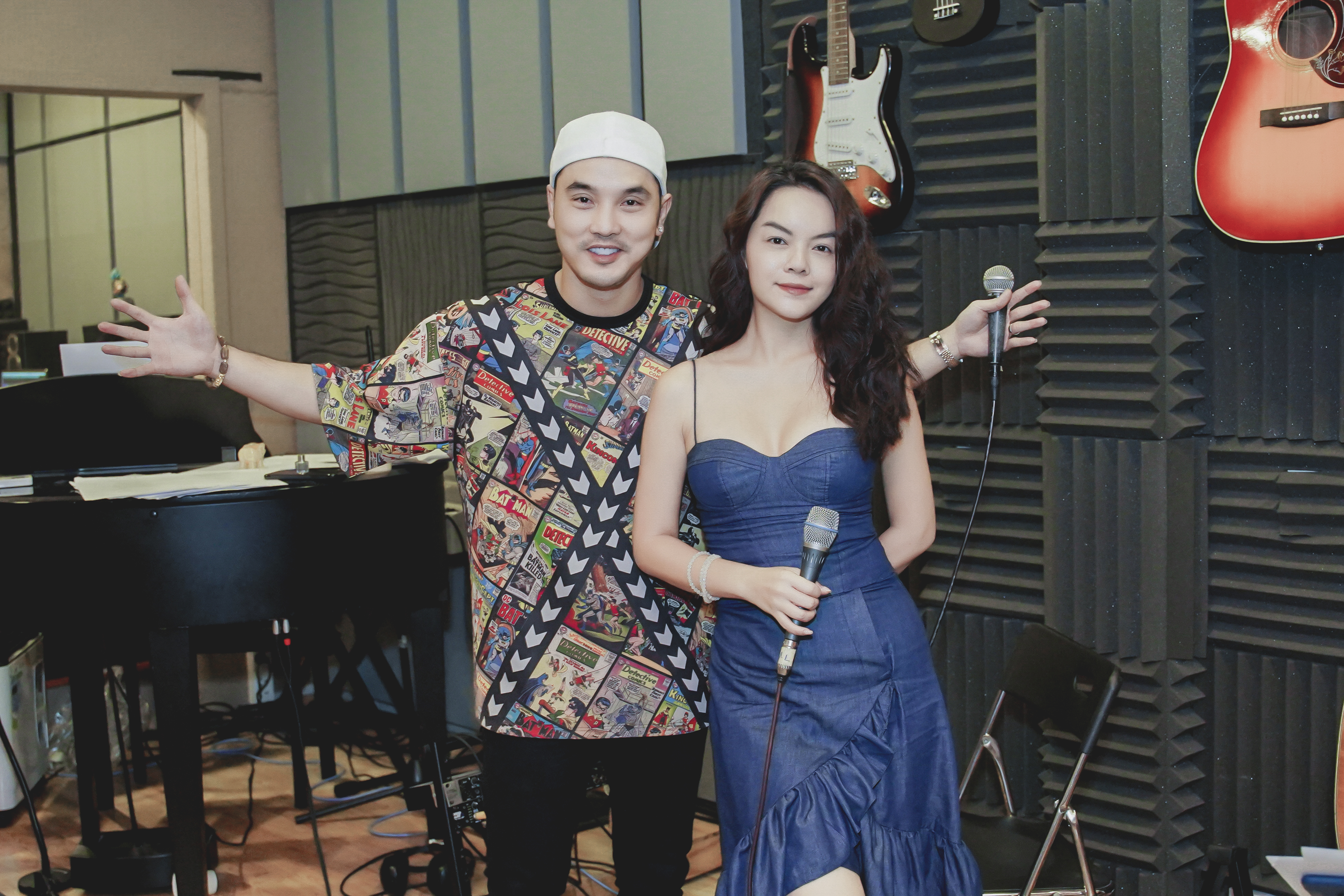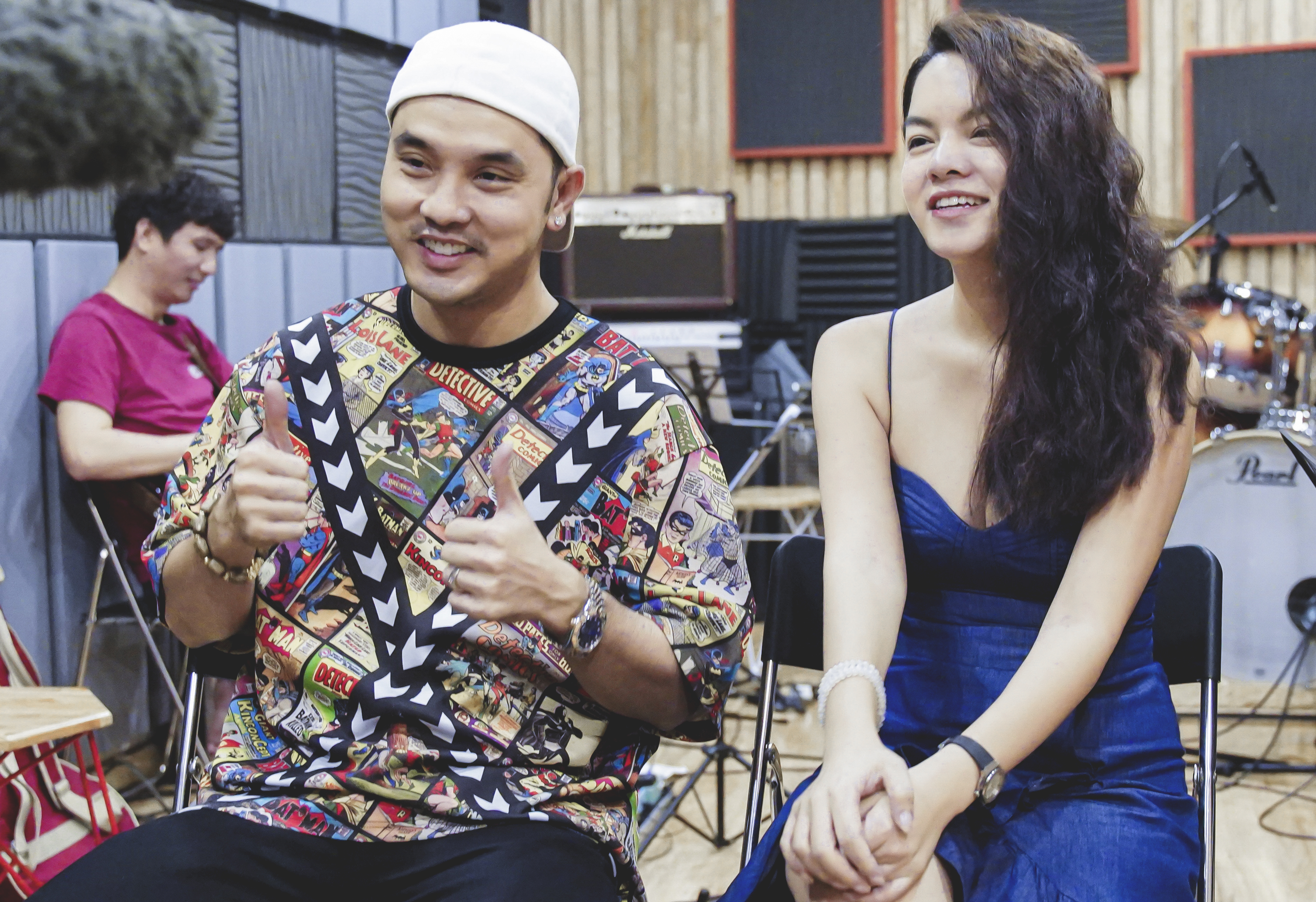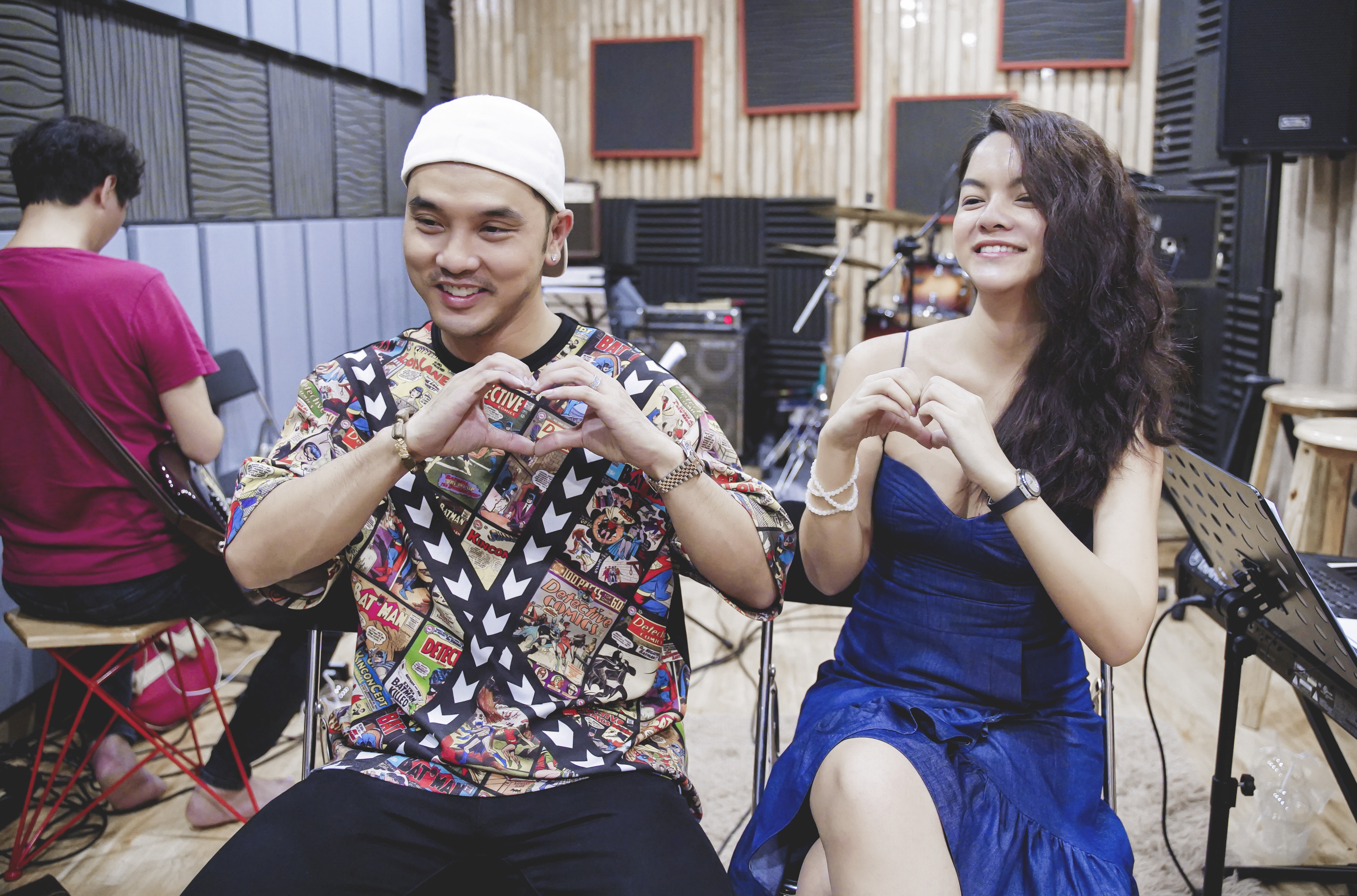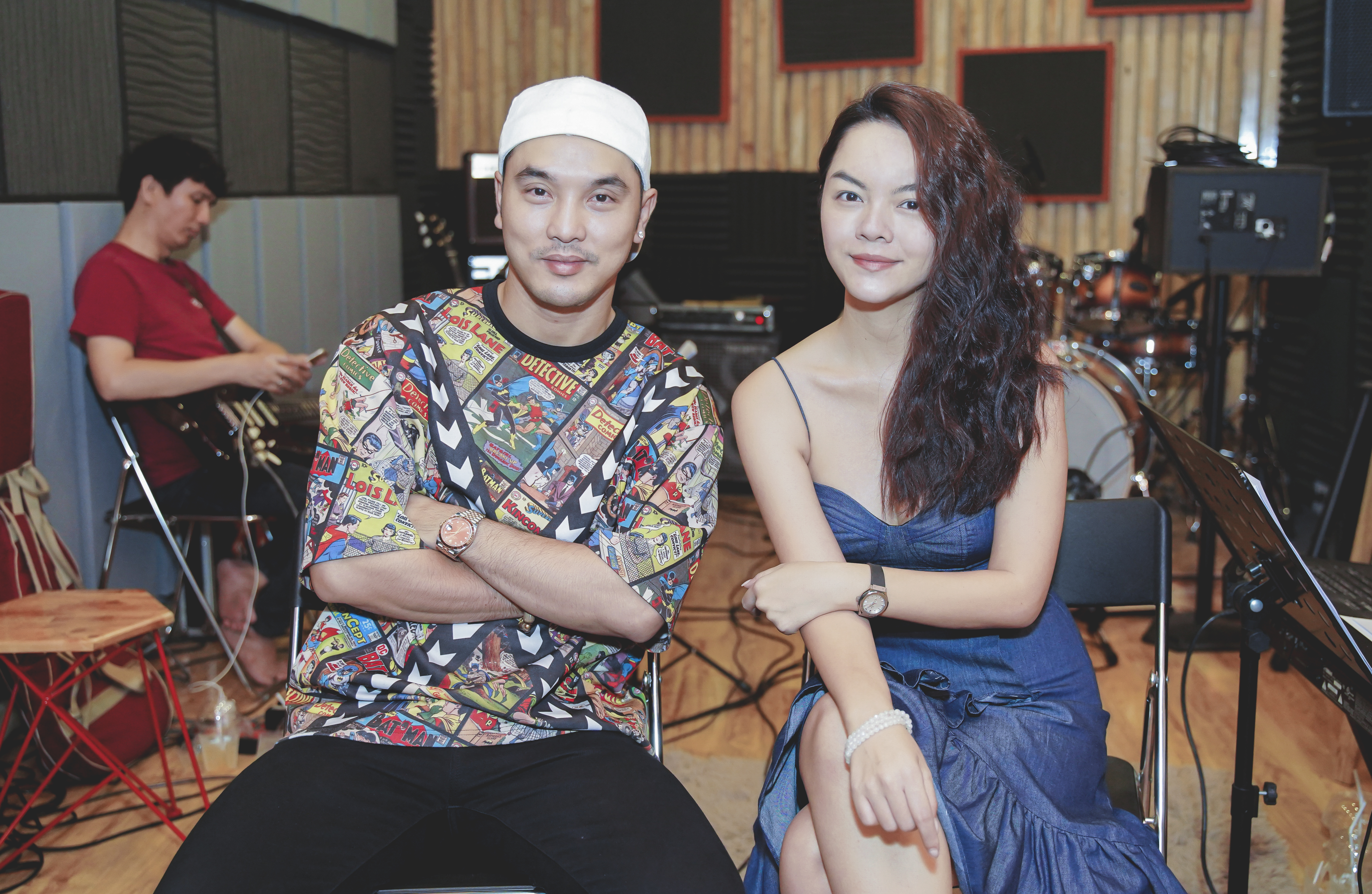 Ưng Hoàng Phúc và Phạm Quỳnh Anh trong buổi tập luyện cho đêm nhạc.