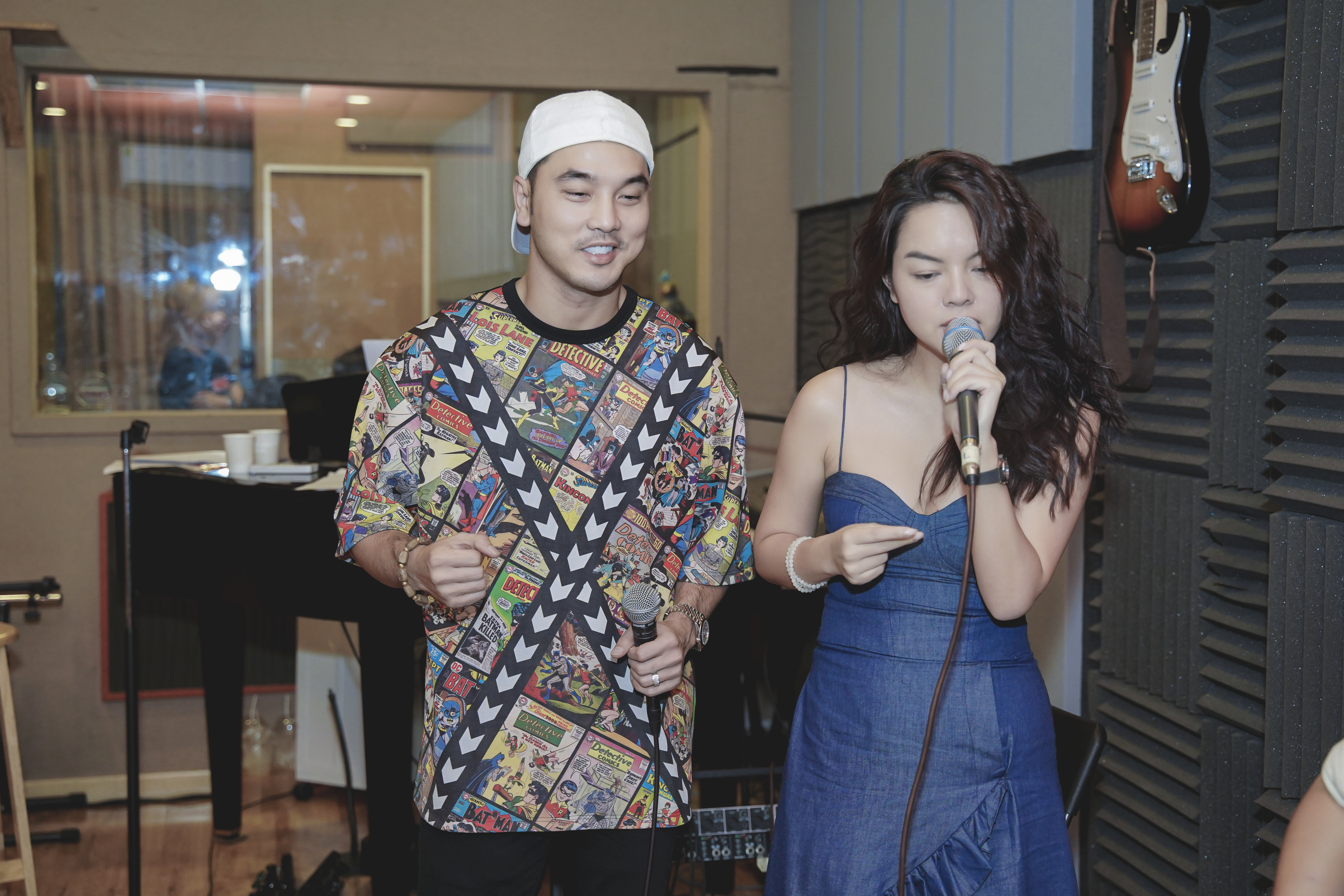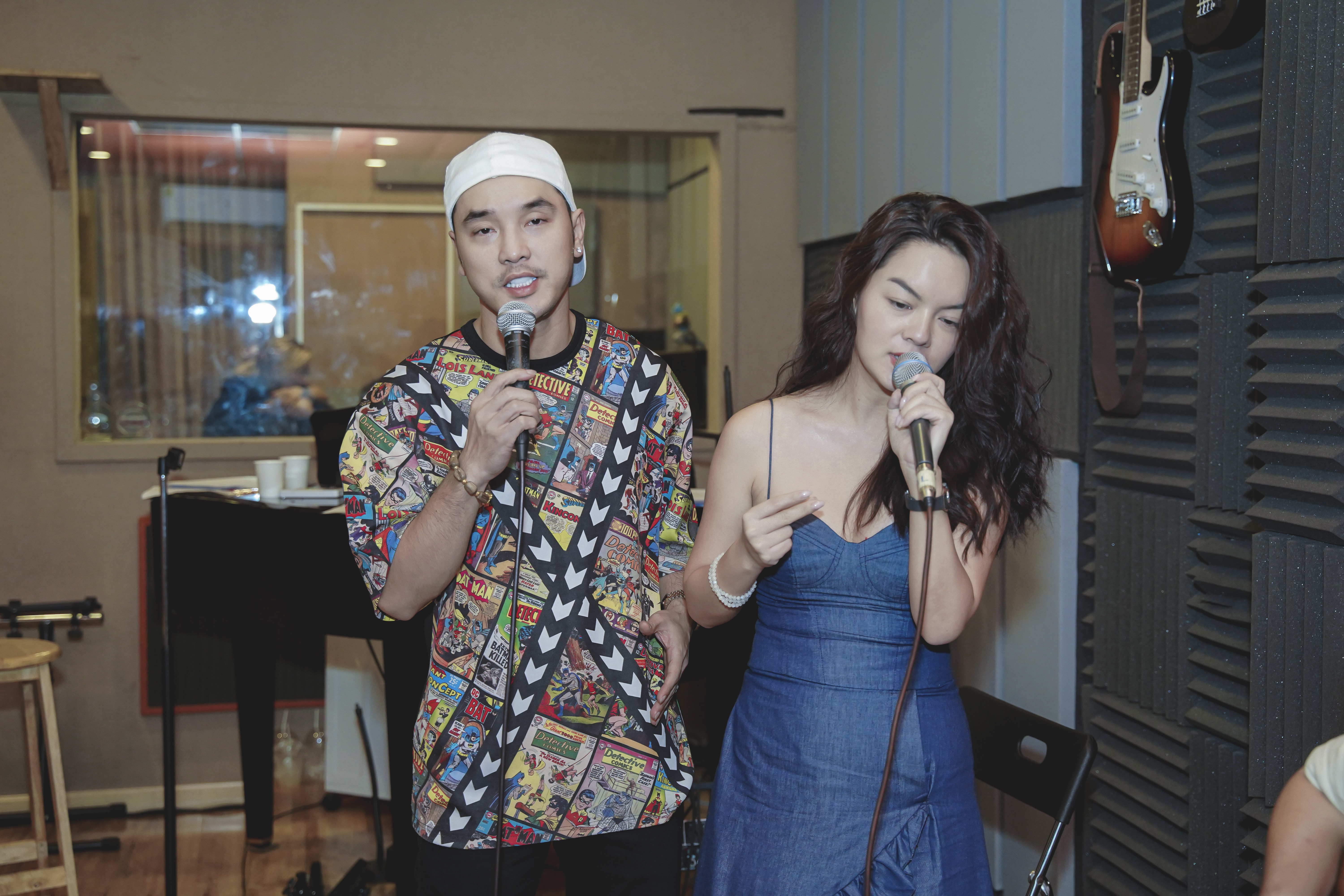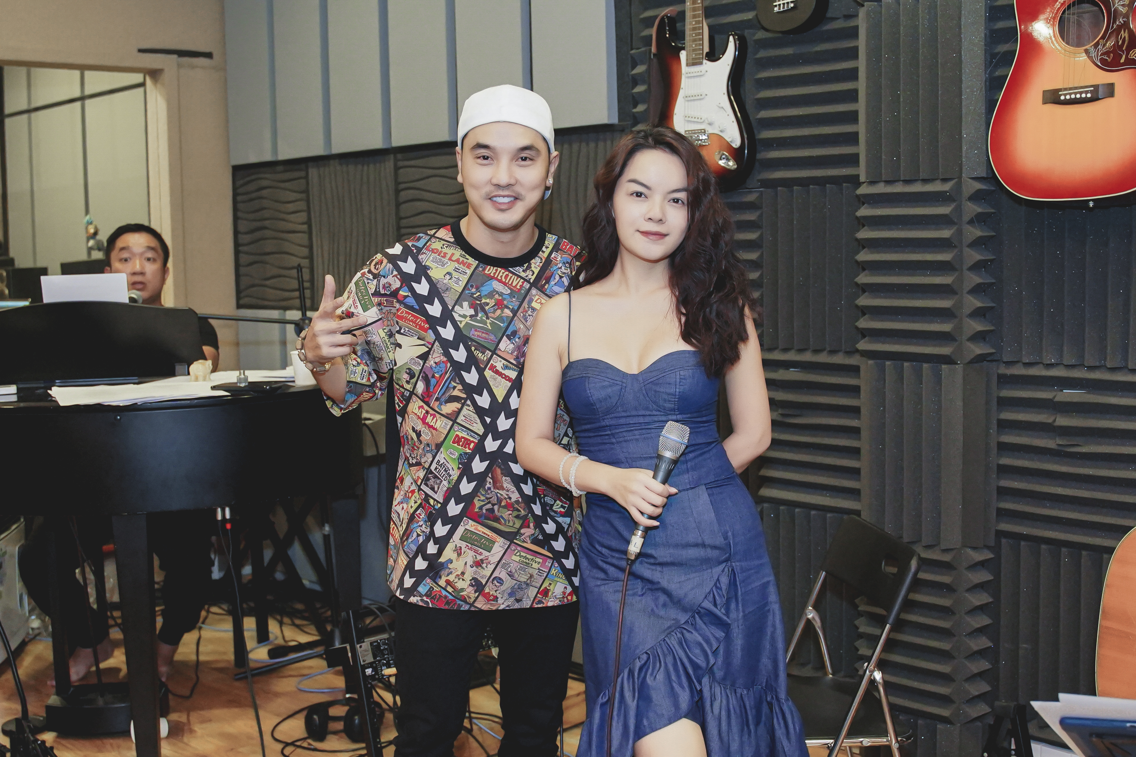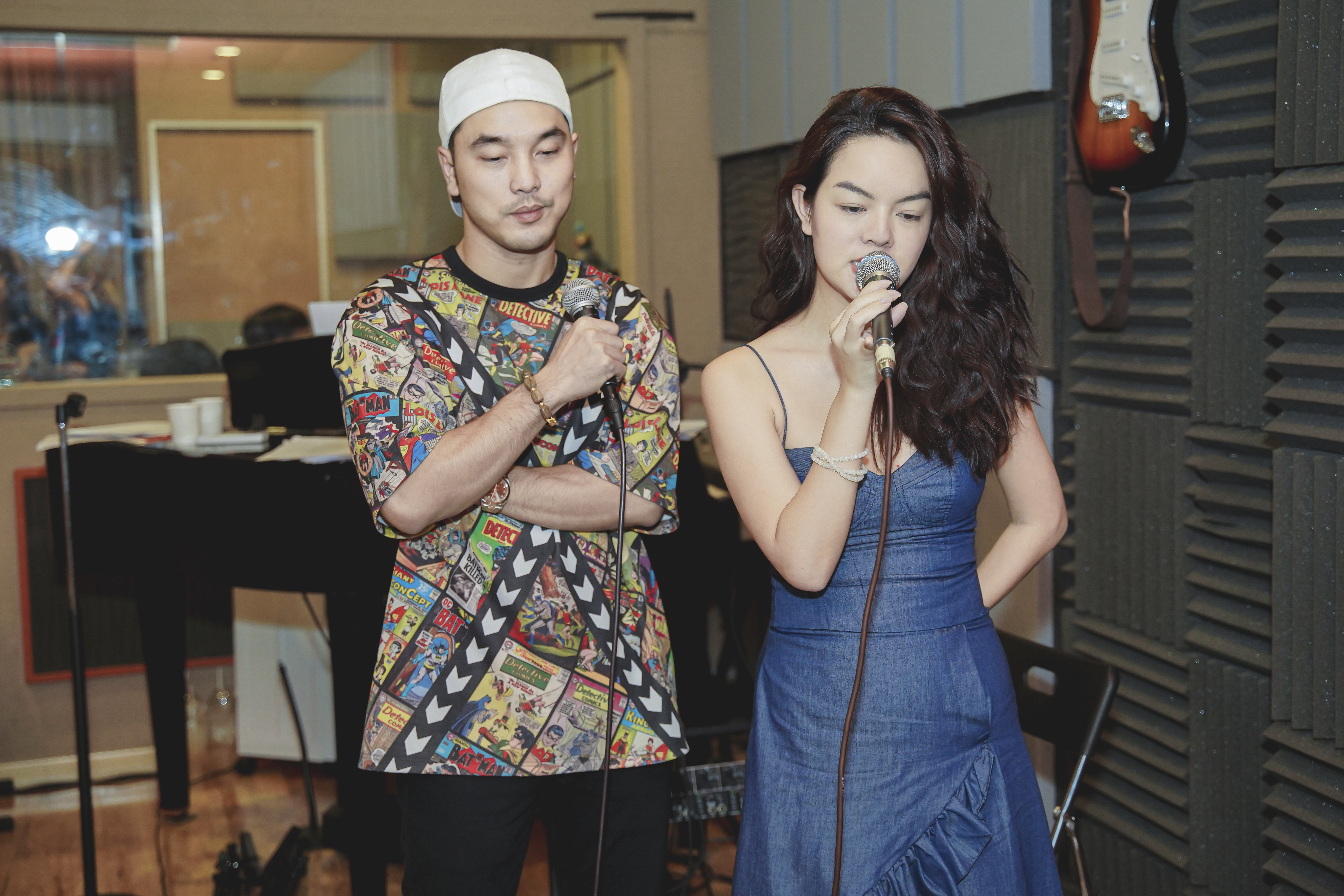 Ưng Hoàng Phúc và Phạm Quỳnh Anh trong buổi tập luyện cho đêm nhạc.