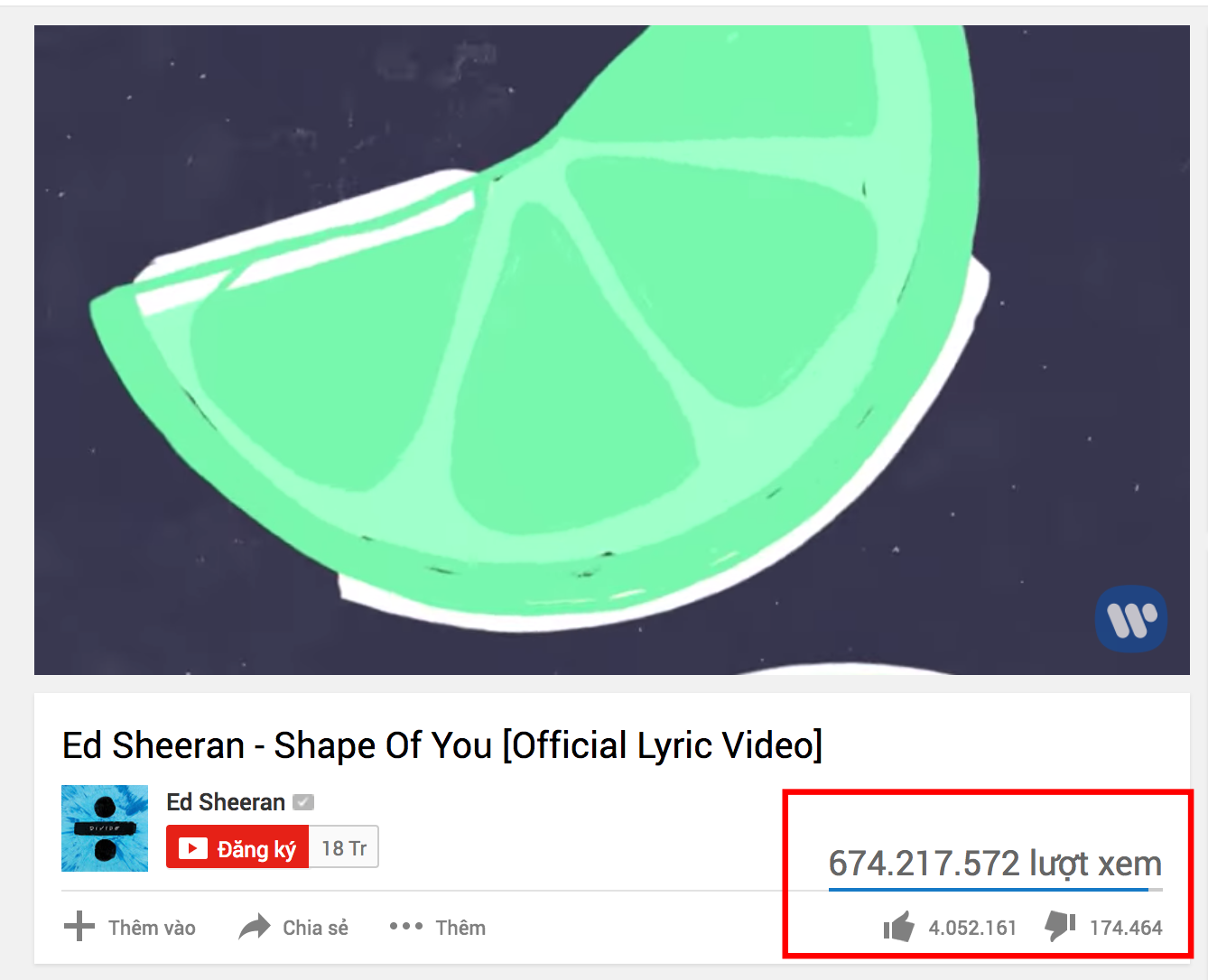 Chỉ mỗi MV Lyric thôi cũng đã đứng hạng 4 trong số những MV nhiều view nhất 2017. Một phần nhờ vào sự sáng tạo trong dàn xếp câu chữ, hình ảnh, nhưng chắc chắn, âm nhạc tuyệt vời mới chính là thứ khiến Shape of You “hót hòn họt” đến vậy.