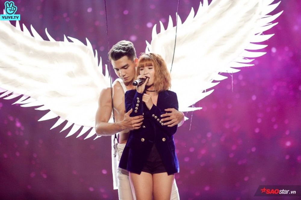 Khởi My cất cao giọng hát cùng ca khúc Tôi muốn yêu một người. Một trong những điểm nhấn “đinh” của màn trình diễn này chính là phân đoạn cuối: khi có một anh chàng “thiên thần” 6 múi vạm vỡ “bay” từ trên cao xuống bên cạnh Khởi My và ôm chặt lấy cô trước sự thích thú của khán giả!