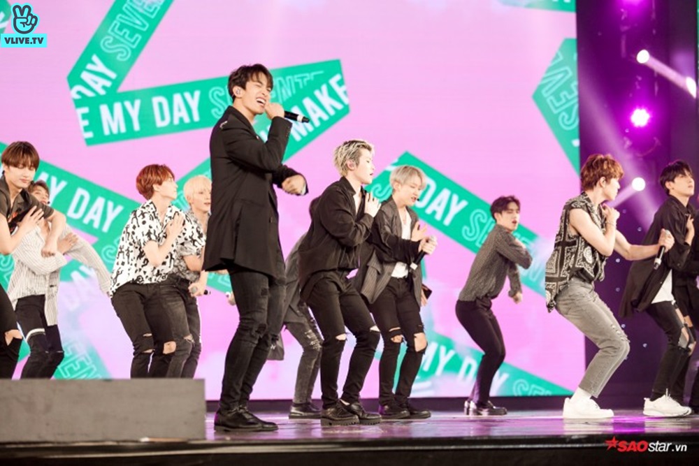 Bên cạnh đó, các chàng trai SEVENTEEN tiếp tục ghi điểm 10 tuyệt đối tỏng trái tim khán giả Việt Nam khi có màn giao lưu khá “nhắng nhít”, đồng thời khả năng tự khuấy động khán giả mà không cần đến M.C của họ thực sự khiến người ta nể phục.