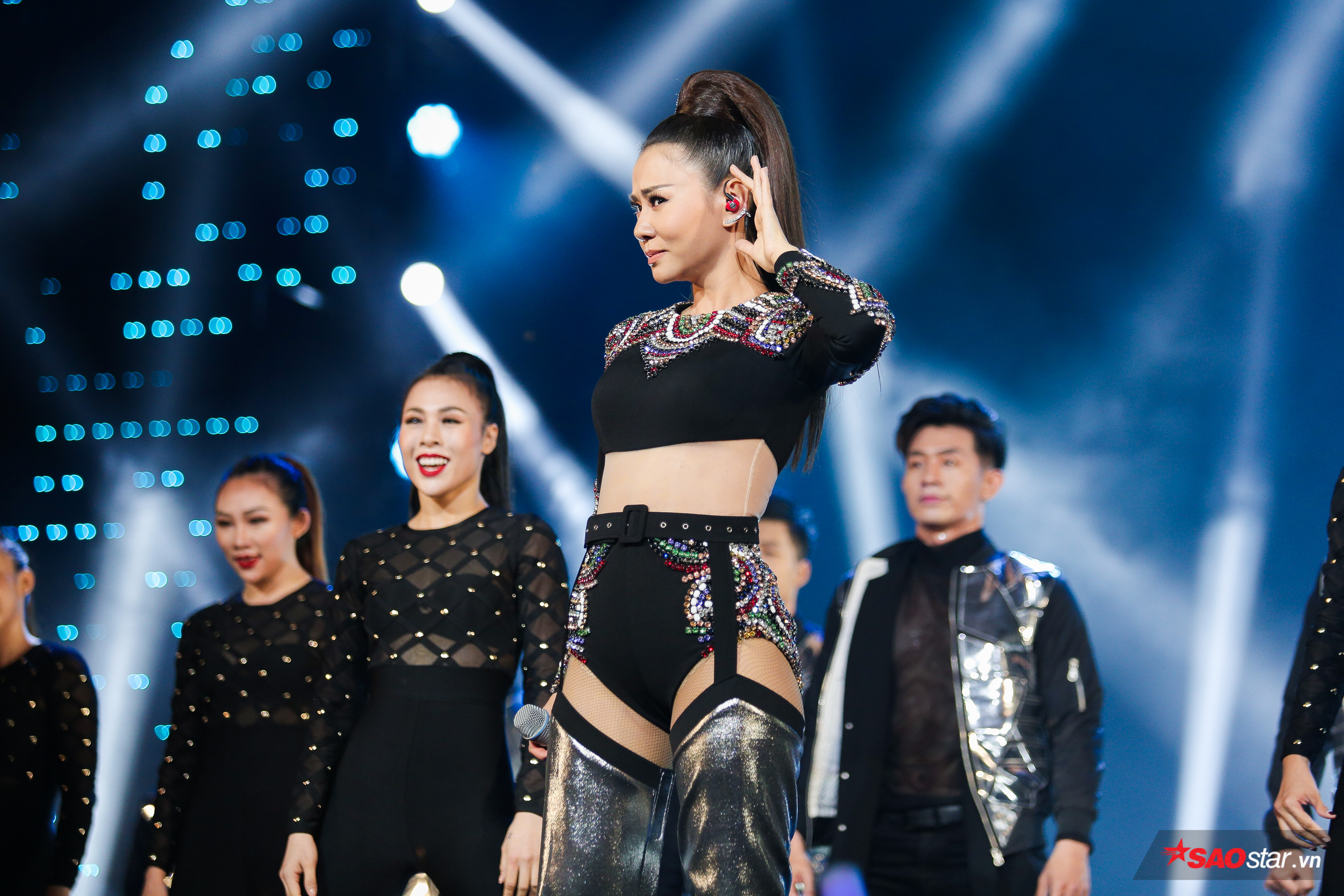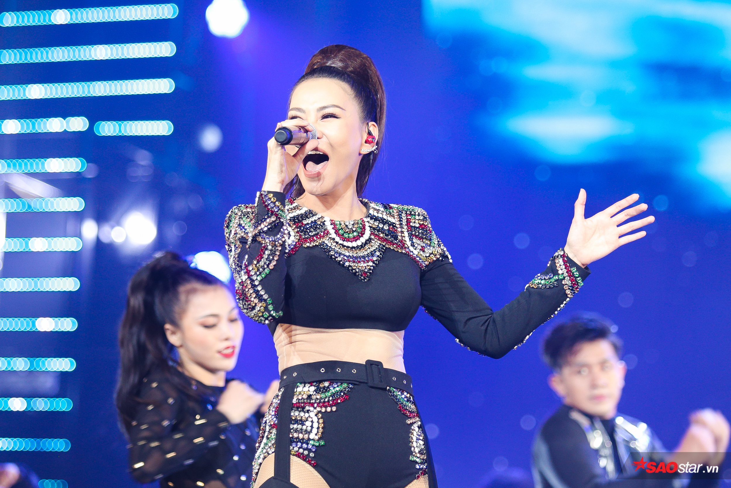 Không hổ danh là “chị đại” Thu Minh khi mang đến phần biểu diễn đẳng cấp và đầu tư hoành tráng với bản phối Remix vô cùng sôi động của ca khúc Bay, bài hát mới phát hành Sống như ta 20 và bản mashup Yêu mình anh - Đừng yêu. Giọng ca đầy nội lực cũng làm những khán giả có mặt không khỏi trầm trồ. Từng sự luyến láy hay phiêu nhấn nhá cùng giai điệu hay những nốt lên tông cao chót vót khiến người hâm mộ phải “sởn da gà”, nín thở dõi theo từng nhịp và không thể nào rời mắt.