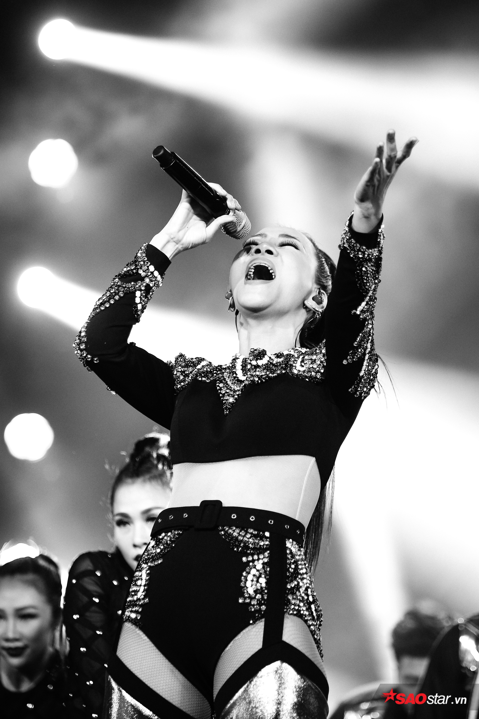 Mở màn bằng ca khúc Bay phiên bản Remix, nữ ca sĩ đã khiến khán phòng đêm nhạc trở nên nóng hơn bao giờ hết.